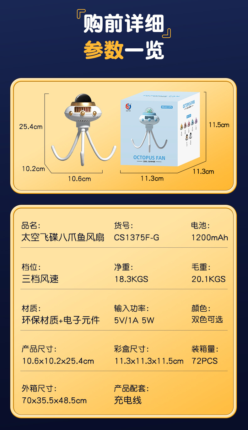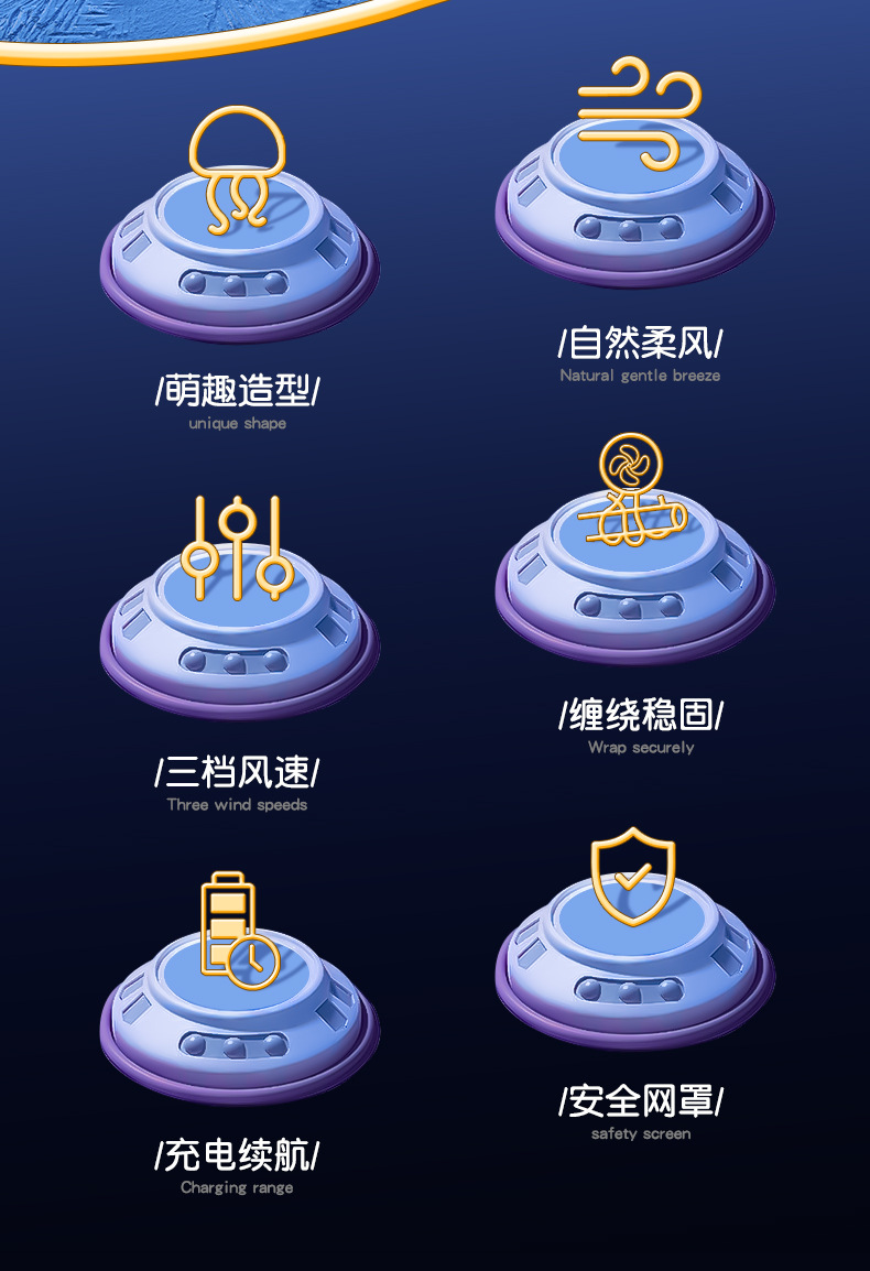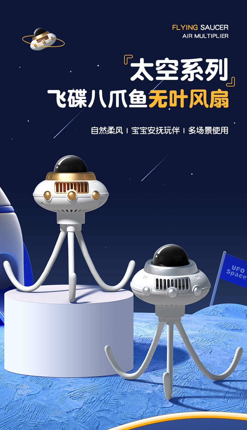foreign trade exclusive new octopus baby space ufo fan baby car 3-speed children's bladeless usb