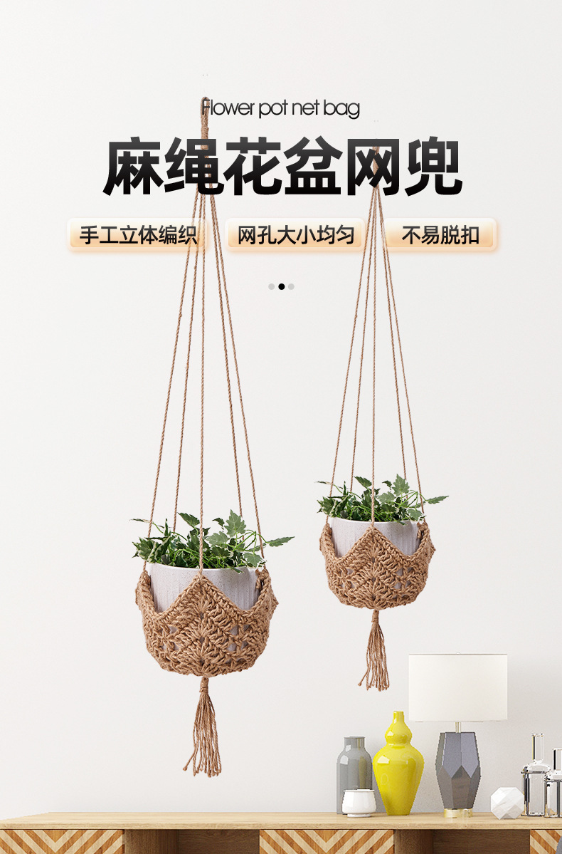flower pot net pocket creative hand weaving cotton string hanging net pocket hang rope pastoral style indoor outdoor hanging basket flower