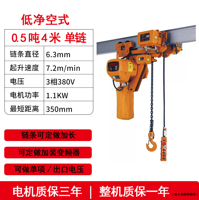 low clearance single chain 0.5 tons 4 meters