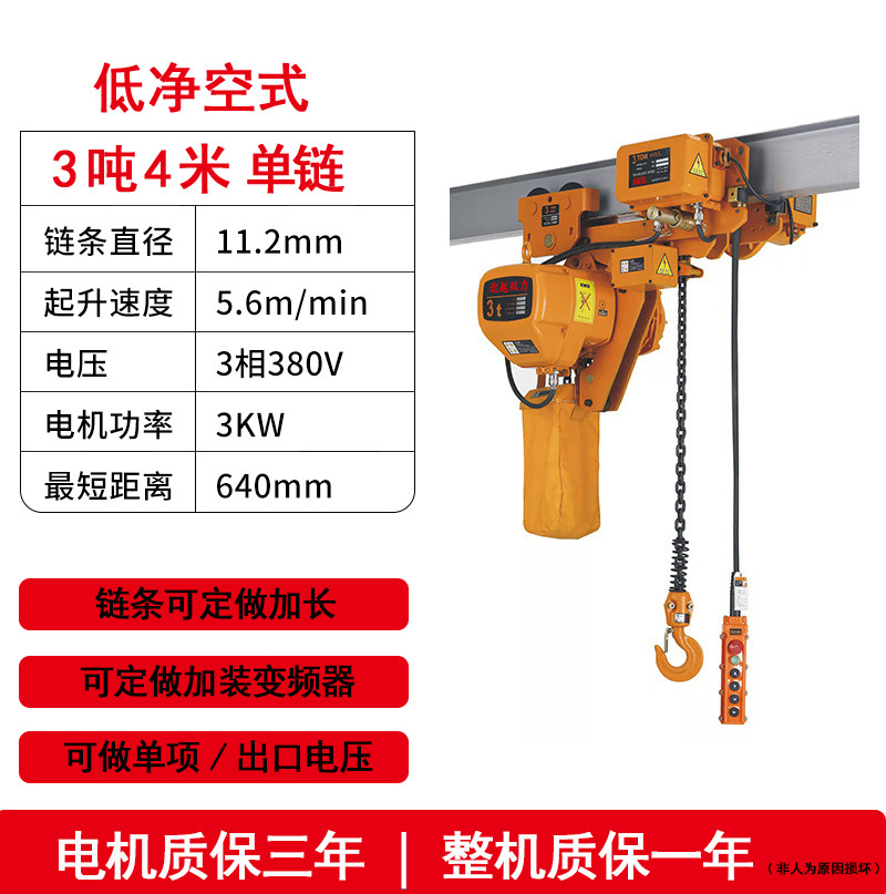 low headroom single chain 3 tons 4 meters