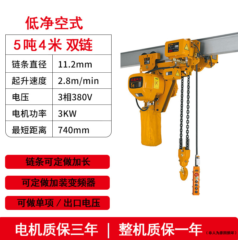 low headroom double chain 5 tons 4 meters