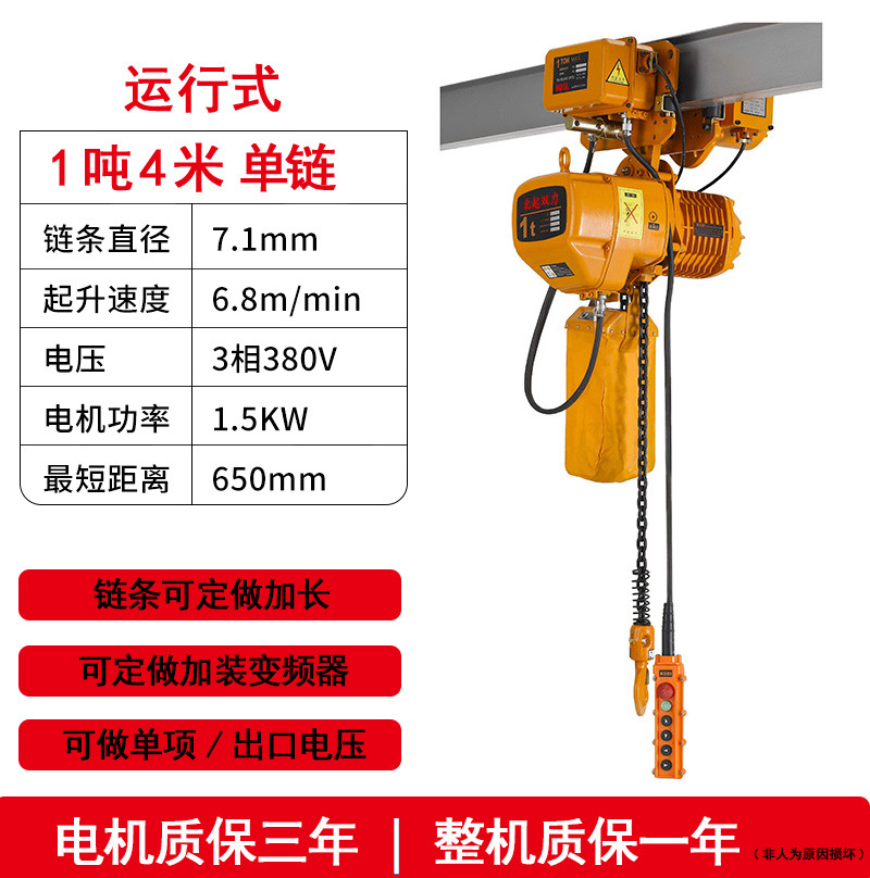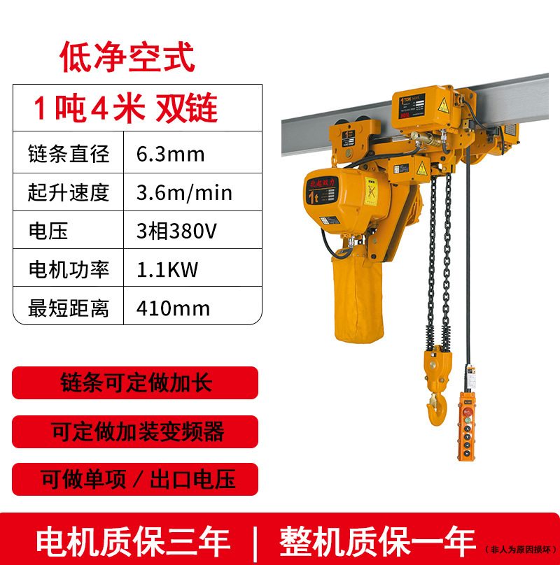 low headroom single chain 1 ton 4 meters