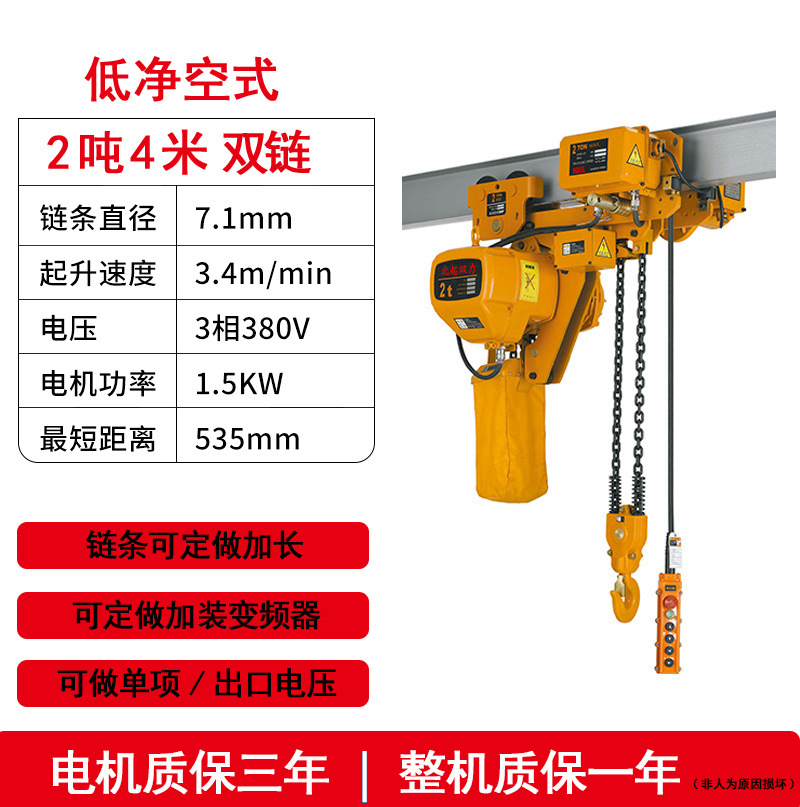 low headroom double chain 2 tons 4 meters