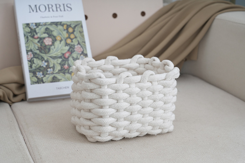 japanese fabric cotton string woven storage basket ins style sundries basket storage basket desktop cosmetics finishing storage box