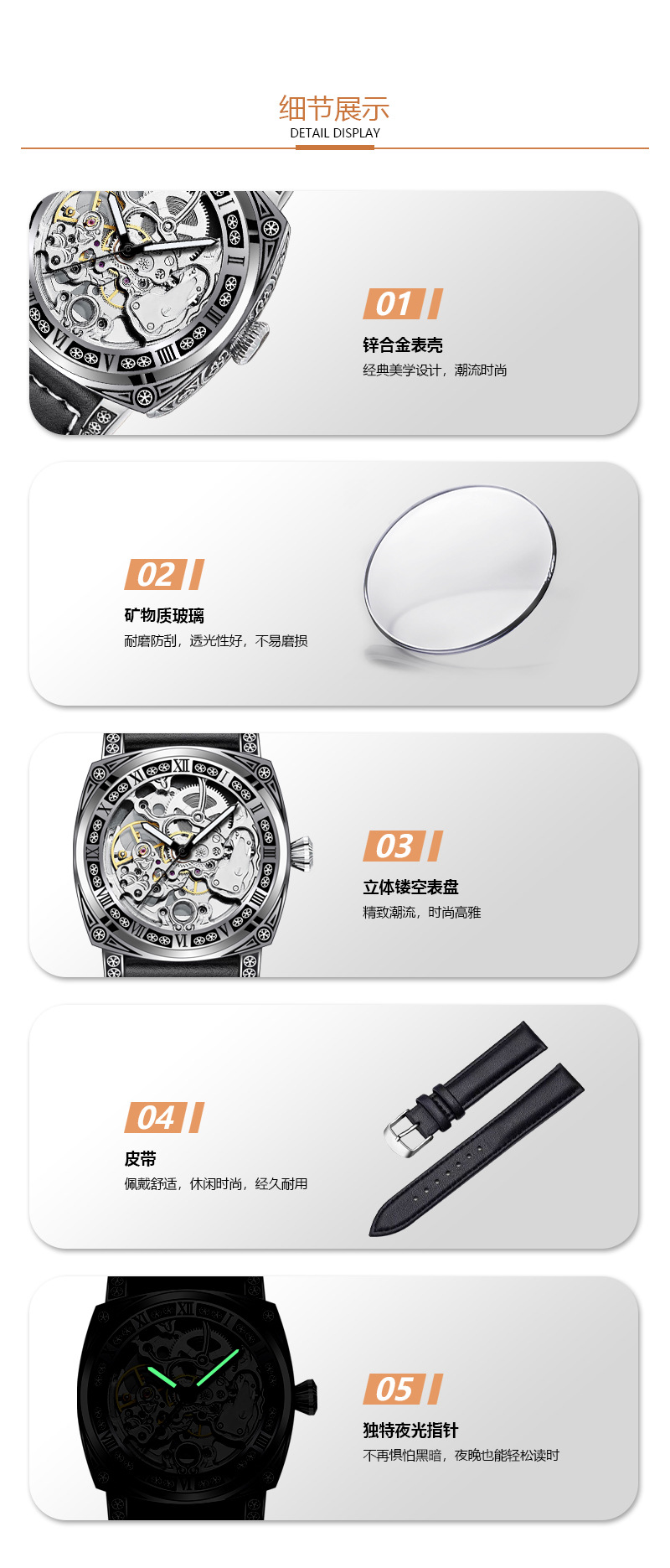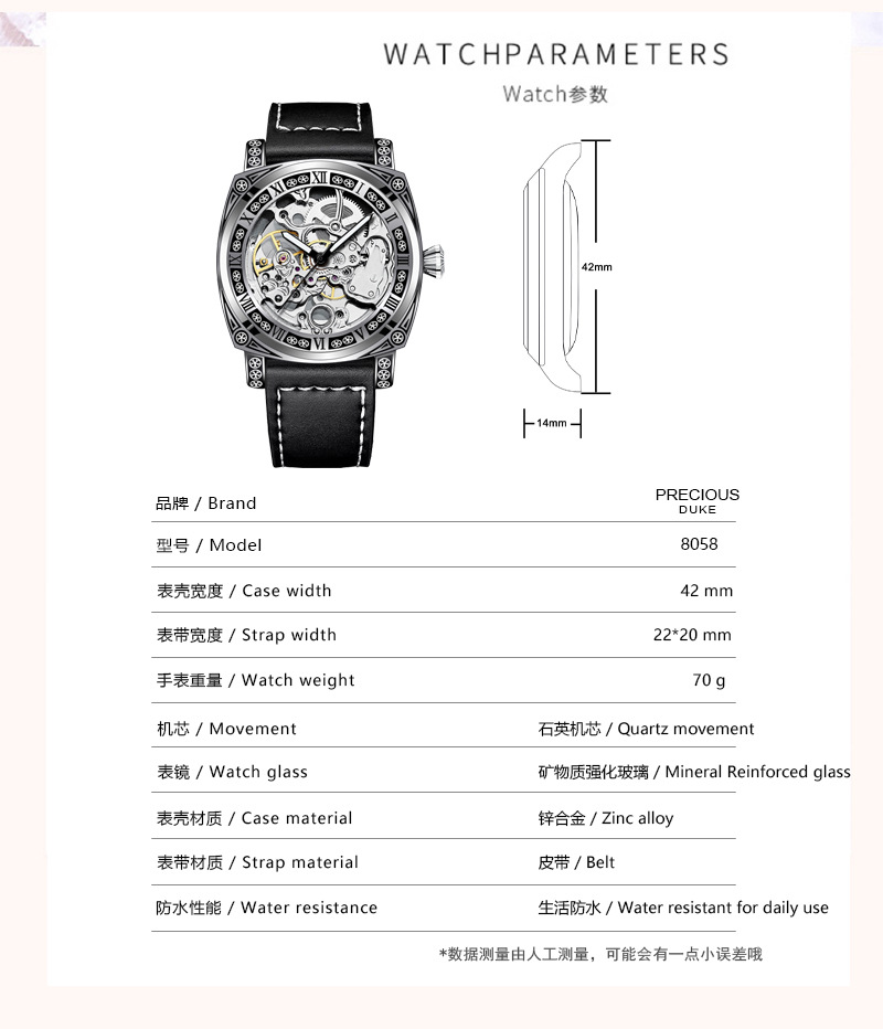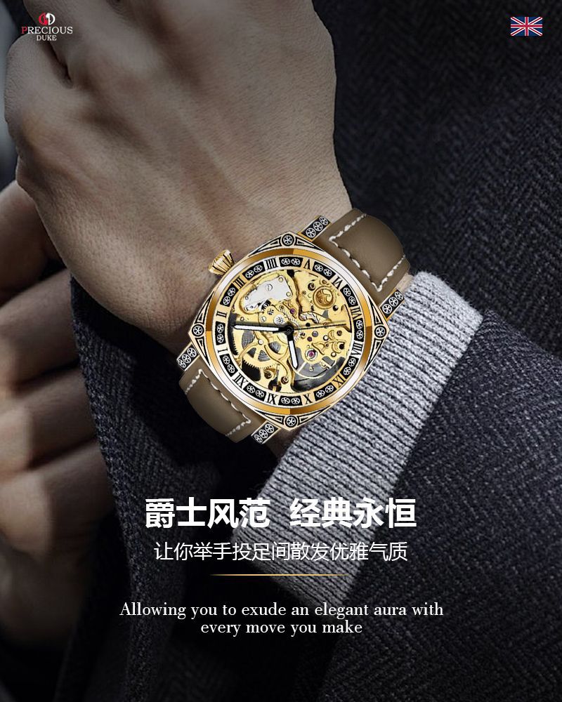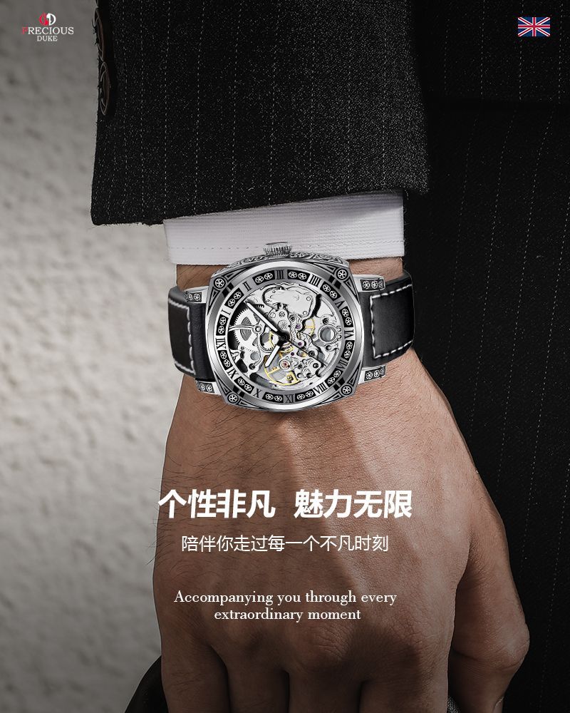 silver case/white surface/brown belt