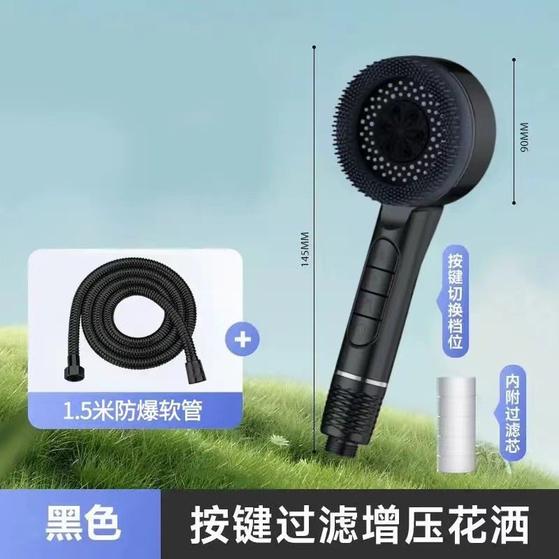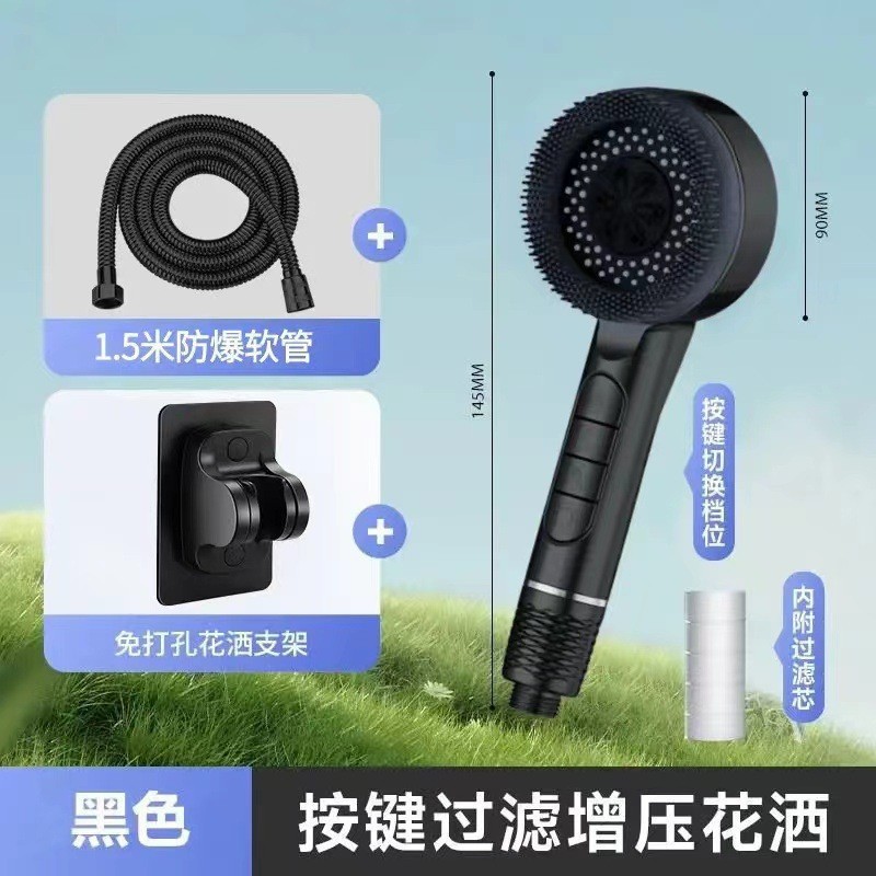 piano supercharged shower-athens black + black punch-free seats +1.5 m black tube + bracket