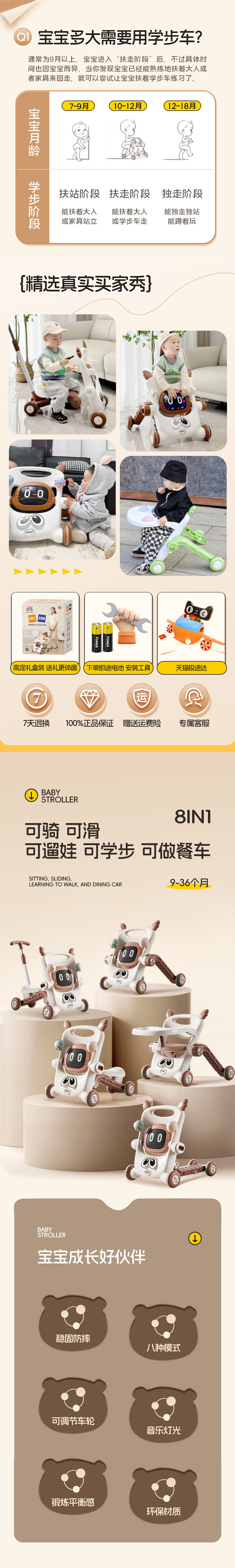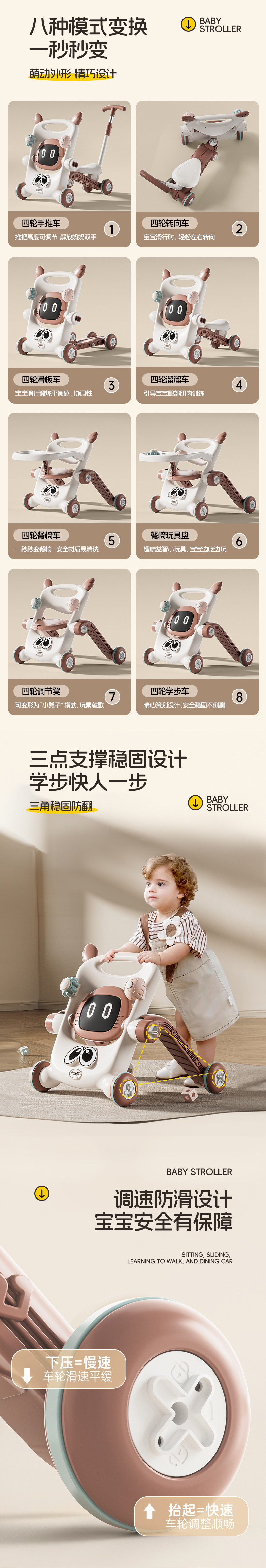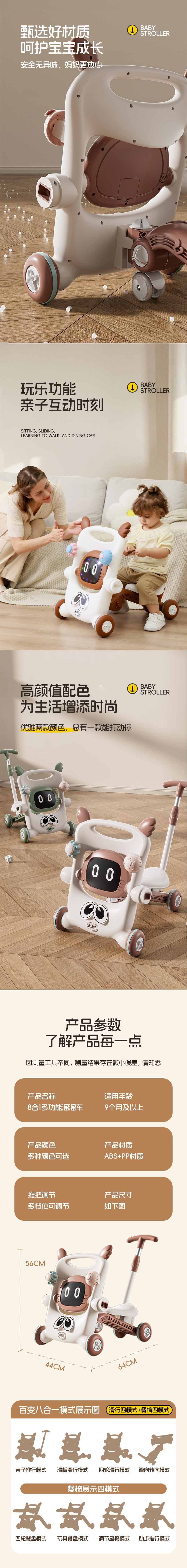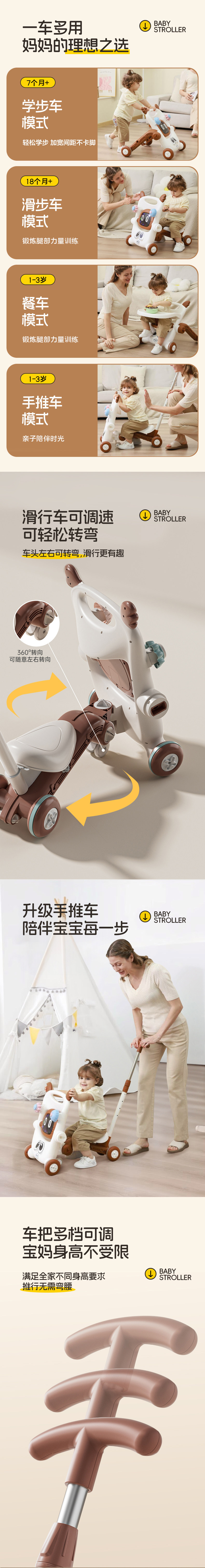 milk tea brown [8 in 1] [push handle + sliding + skateboard + bench + toddler + bench + dining chair + toy plate