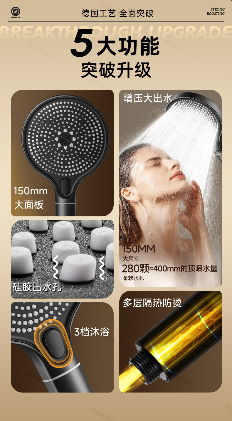 [silver suit 3] supercharged shower + detachable suction cup bracket (free filter element * 5)