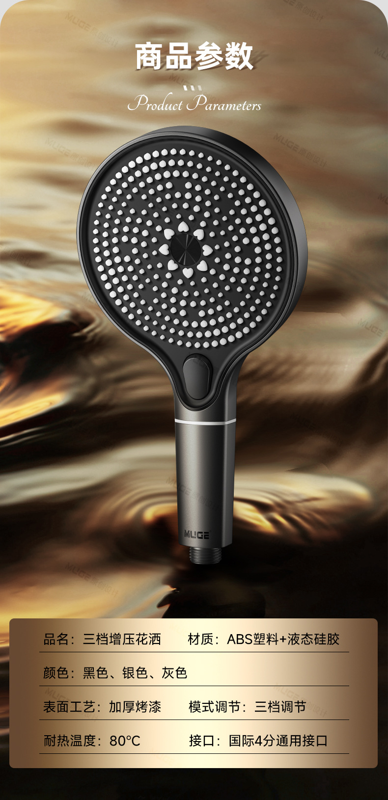 [gun gray suit 3] supercharged shower + detachable sucker bracket (free filter element * 5)