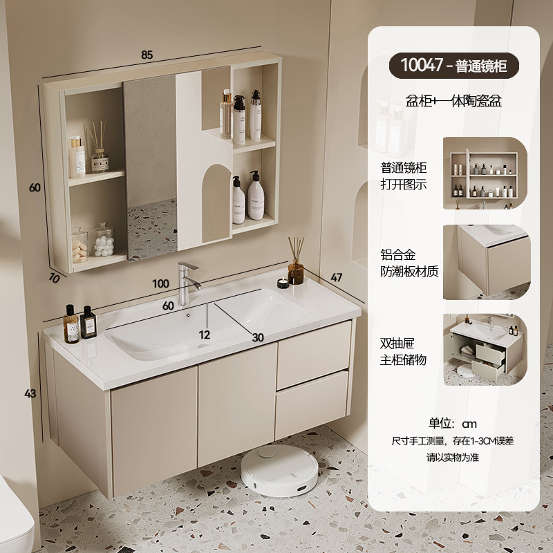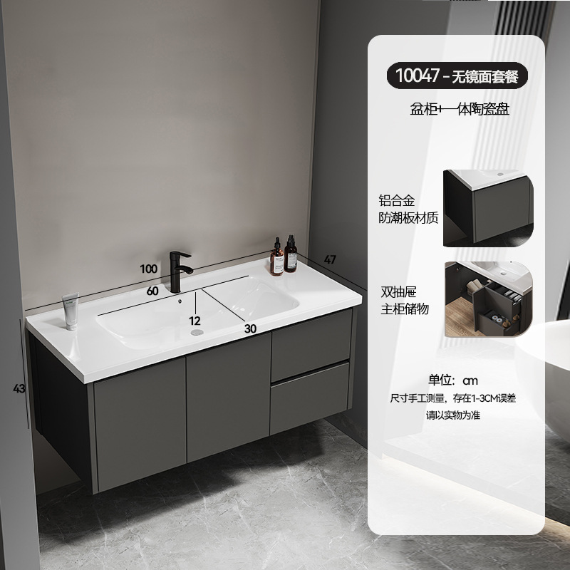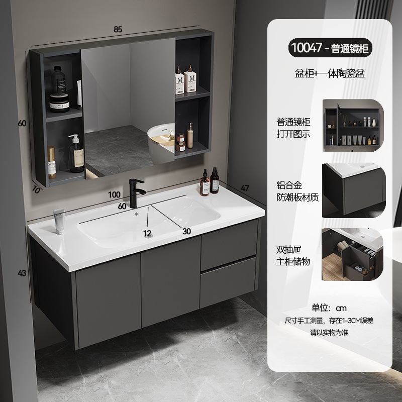 simple gray drawer 100*47 full set of accessories + storage mirror cabinet