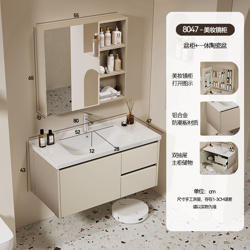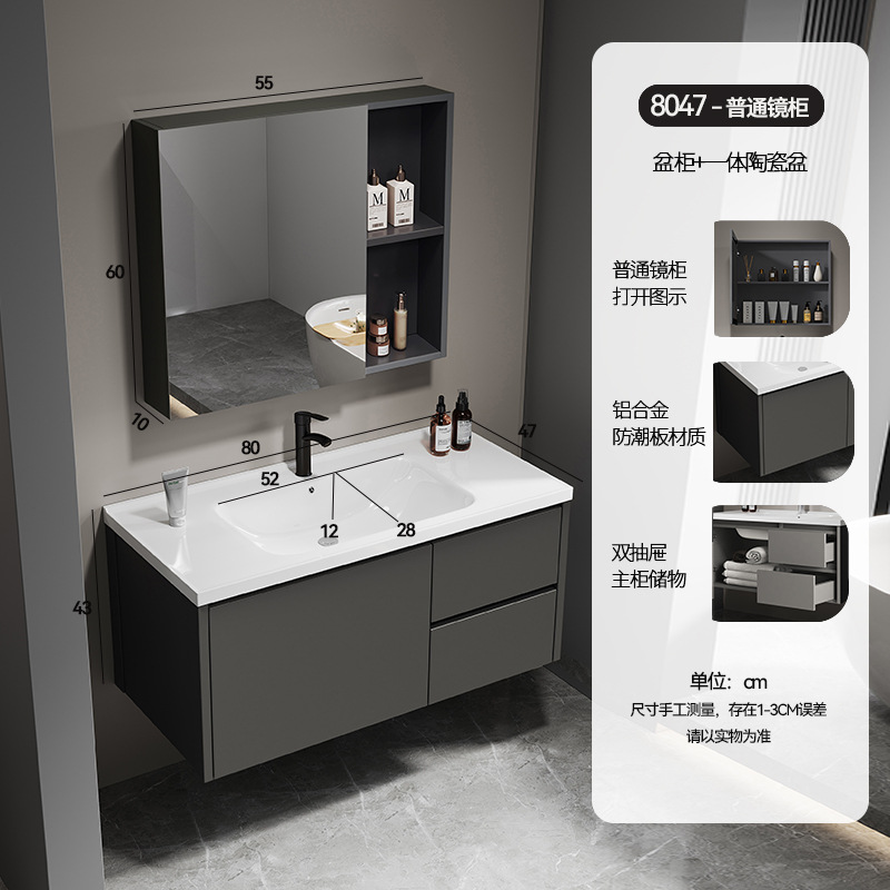 simple gray 8047 full set of accessories + storage mirror cabinet