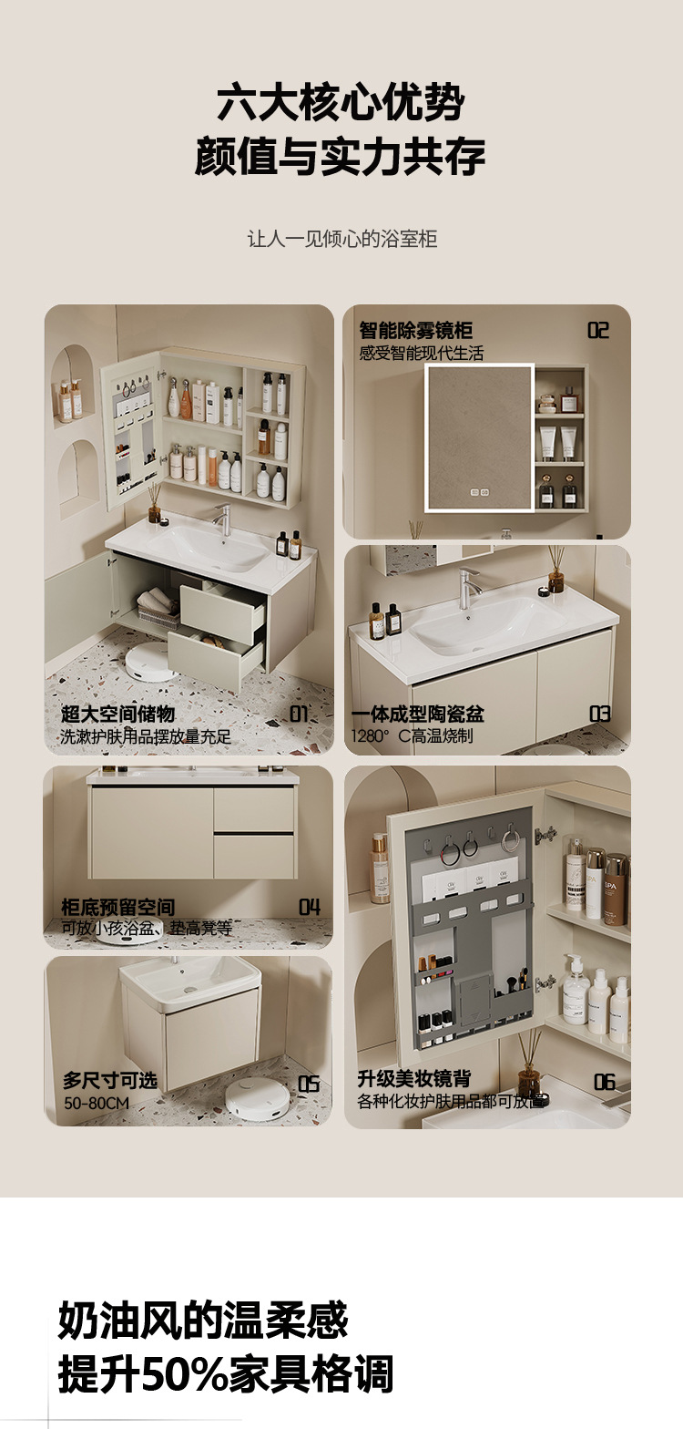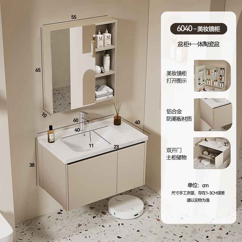 khaki 60*40 full set of accessories + beauty storage mirror cabinet