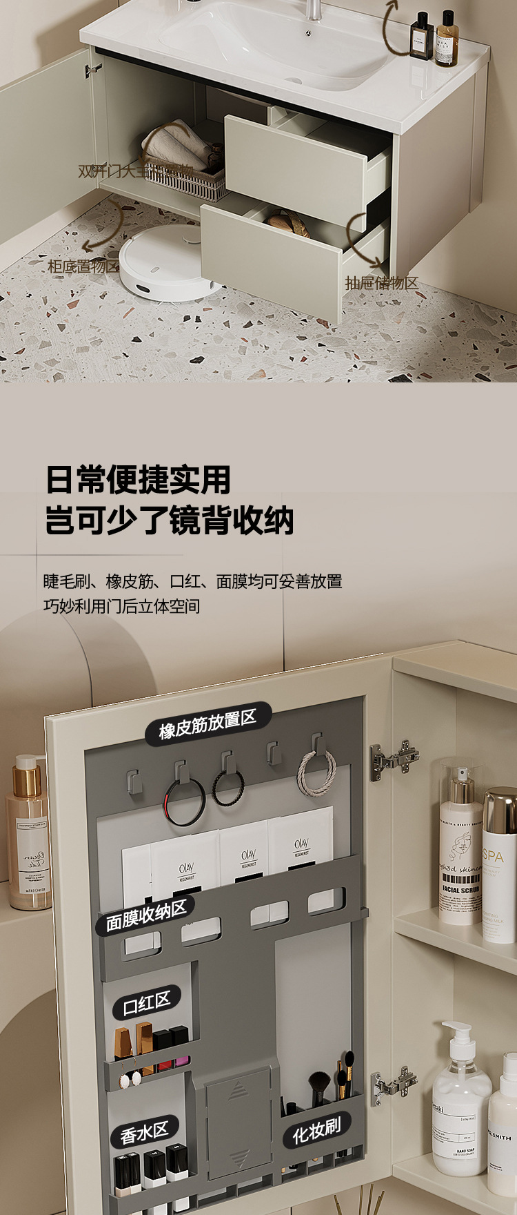 khaki drawer 8047 full set of accessories + beauty storage mirror cabinet