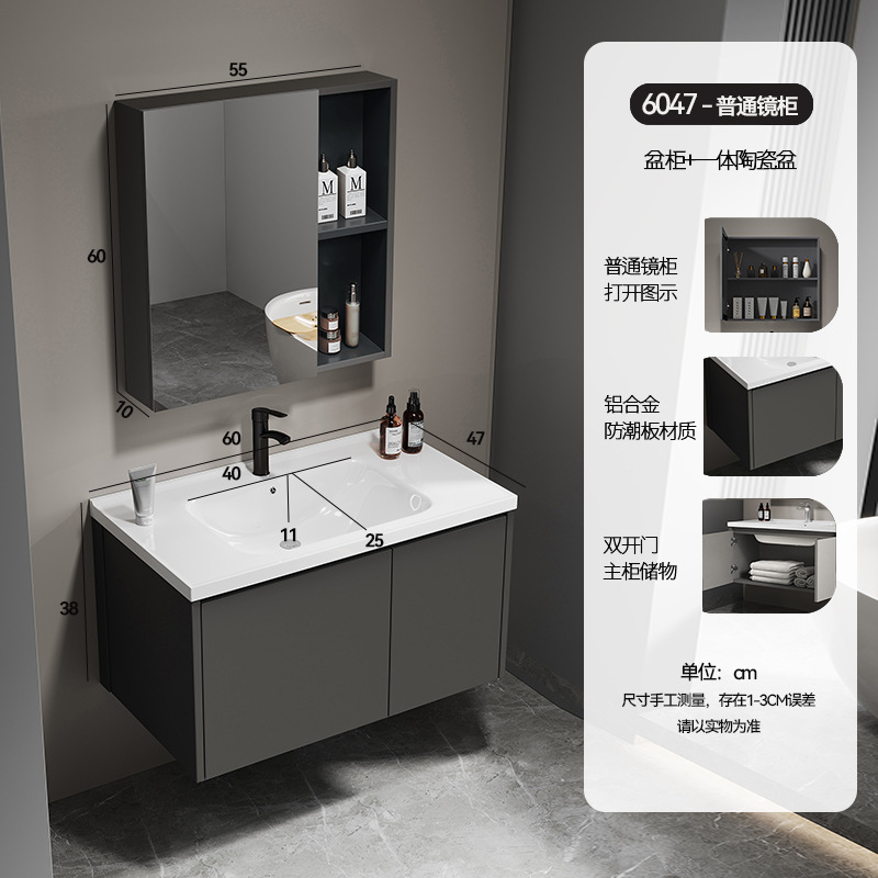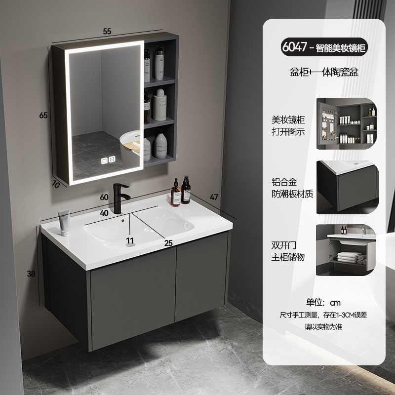 simple gray 60*47 full set of accessories + beauty storage mirror cabinet