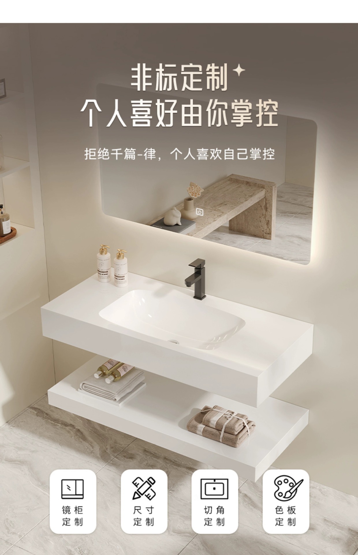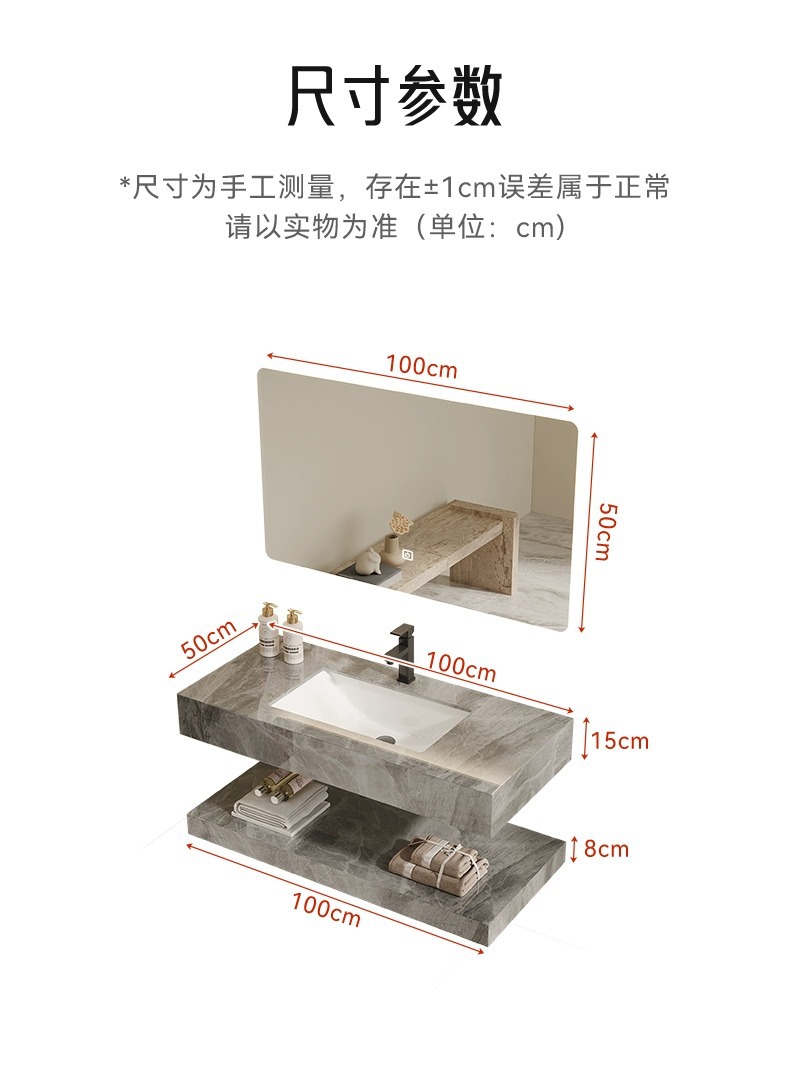 single layer 100-+ smart mirror cabinet-seamless basin