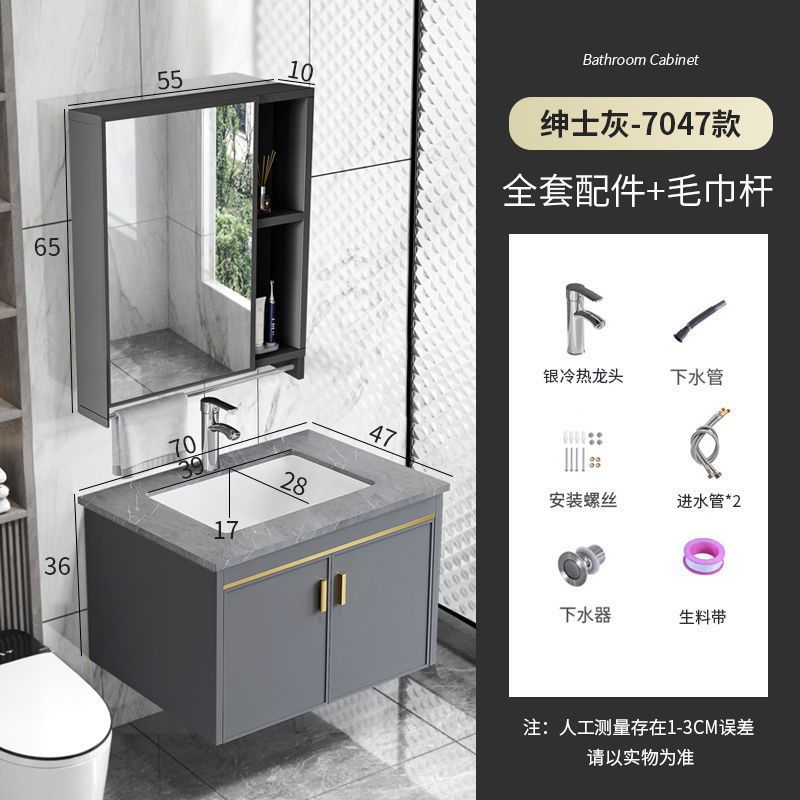 60*47 stone plate basin cabinet-full set of accessories + towel bar mirror cabinet