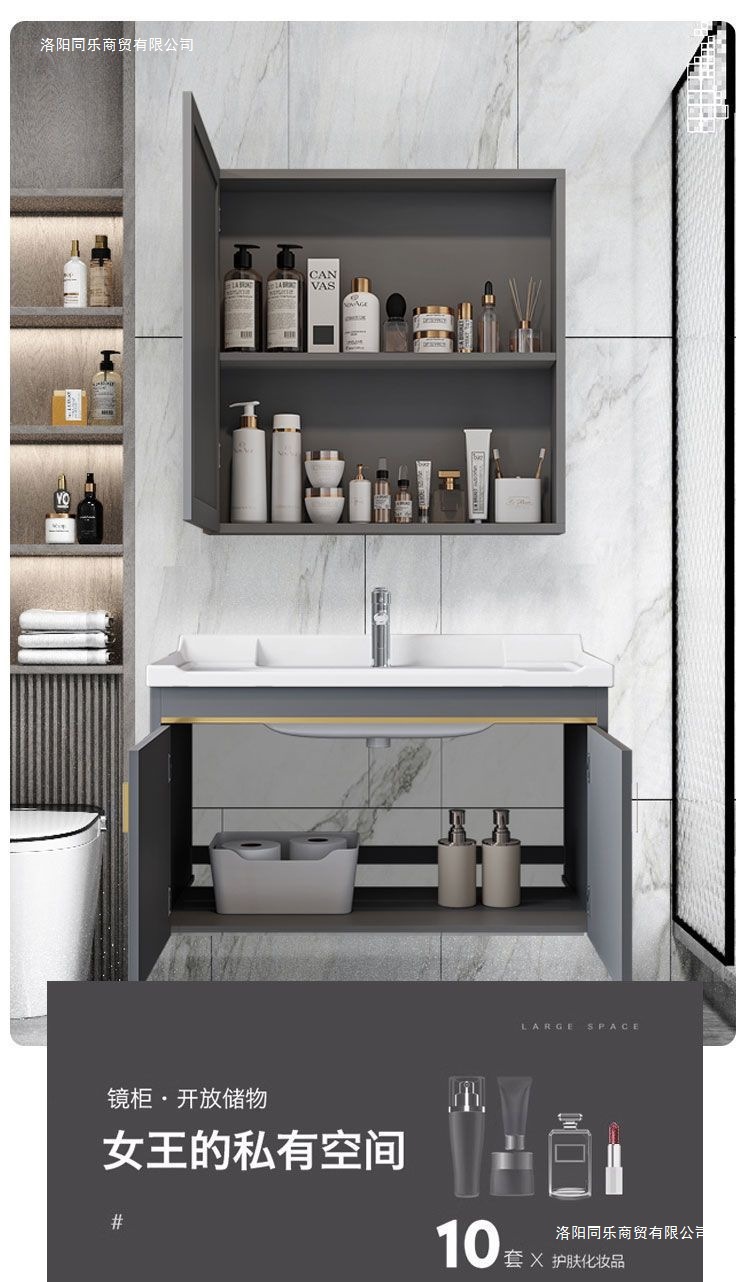 71*47 ceramic basin cabinet-full set of accessories + storage mirror cabinet