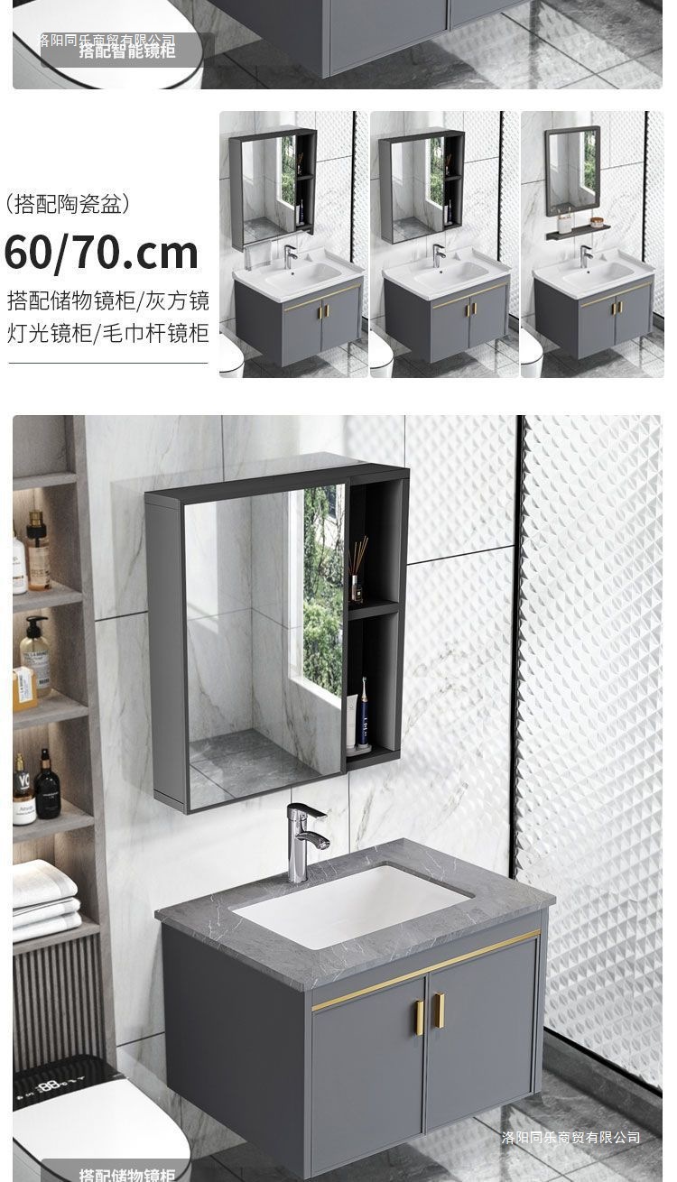 60*47 stone plate basin cabinet-full set of accessories + storage mirror cabinet