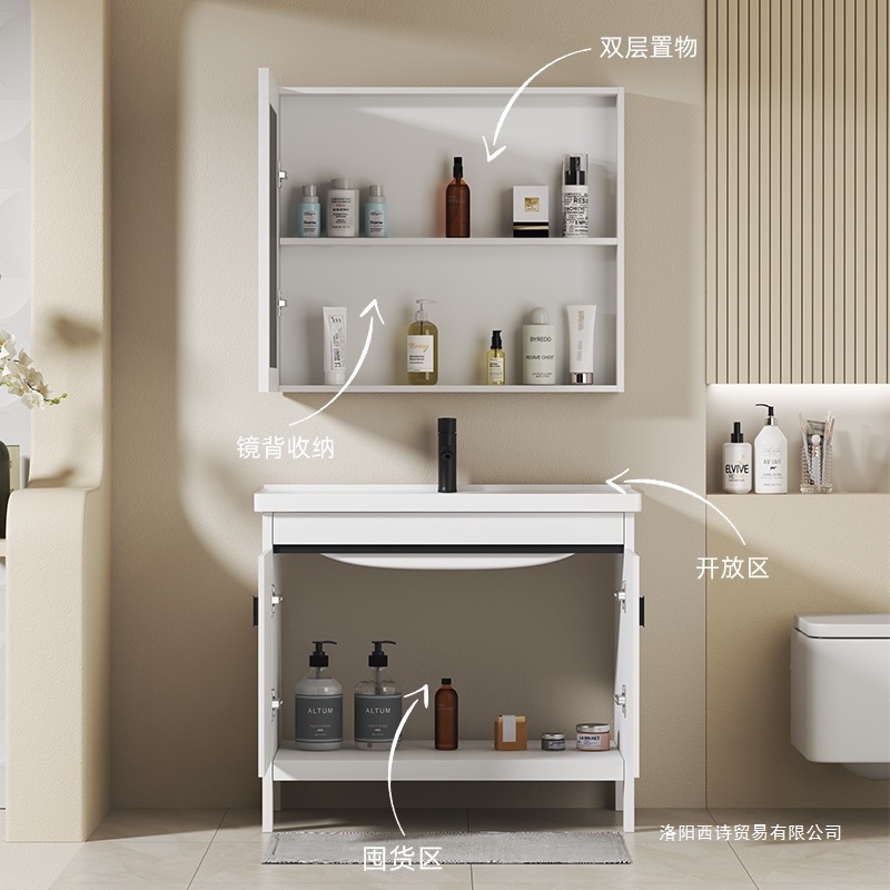 80 ceramic basin + floor cabinet + ordinary mirror cabinet