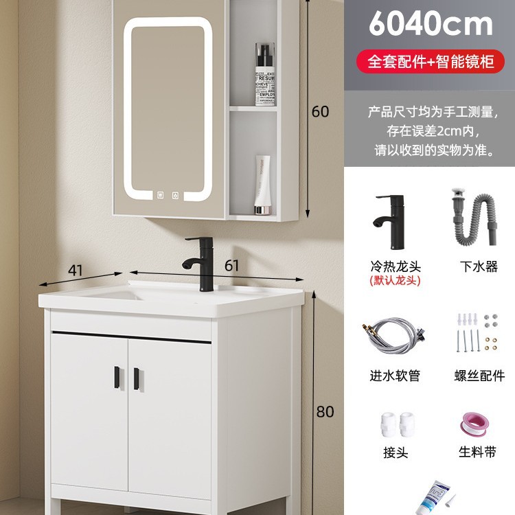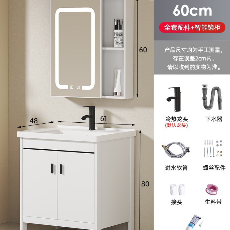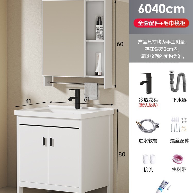 60 ceramic basin + floor cabinet + ordinary mirror cabinet