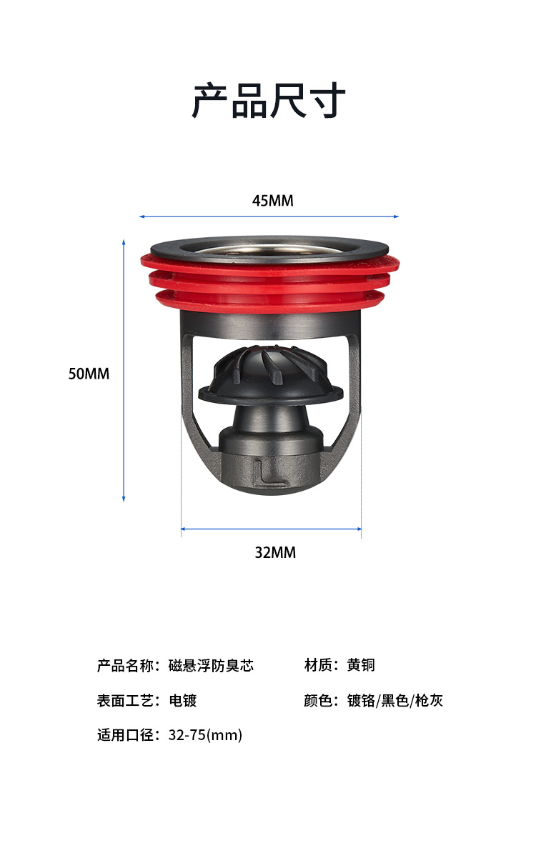 gun gray copper magnetic suspension floor drain core