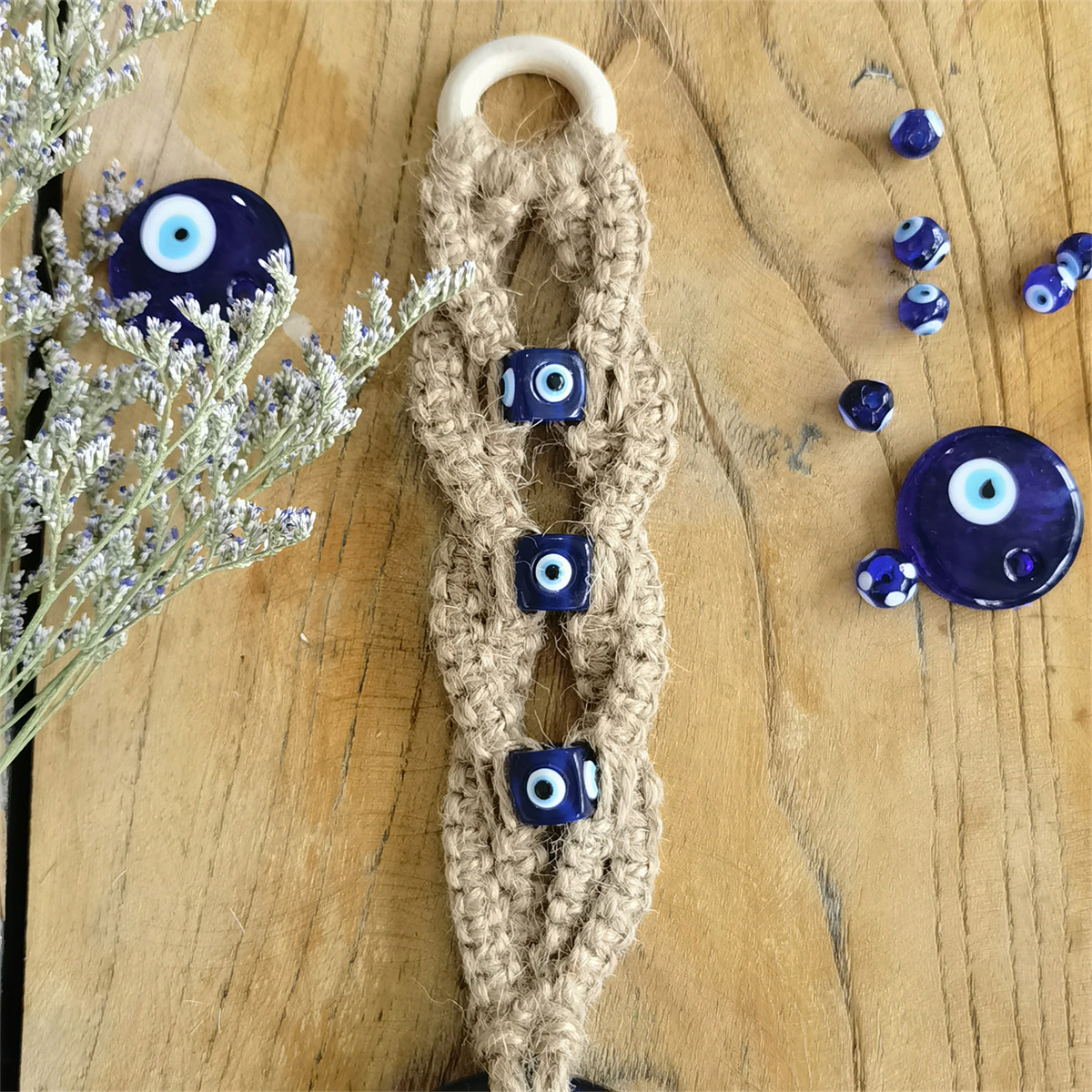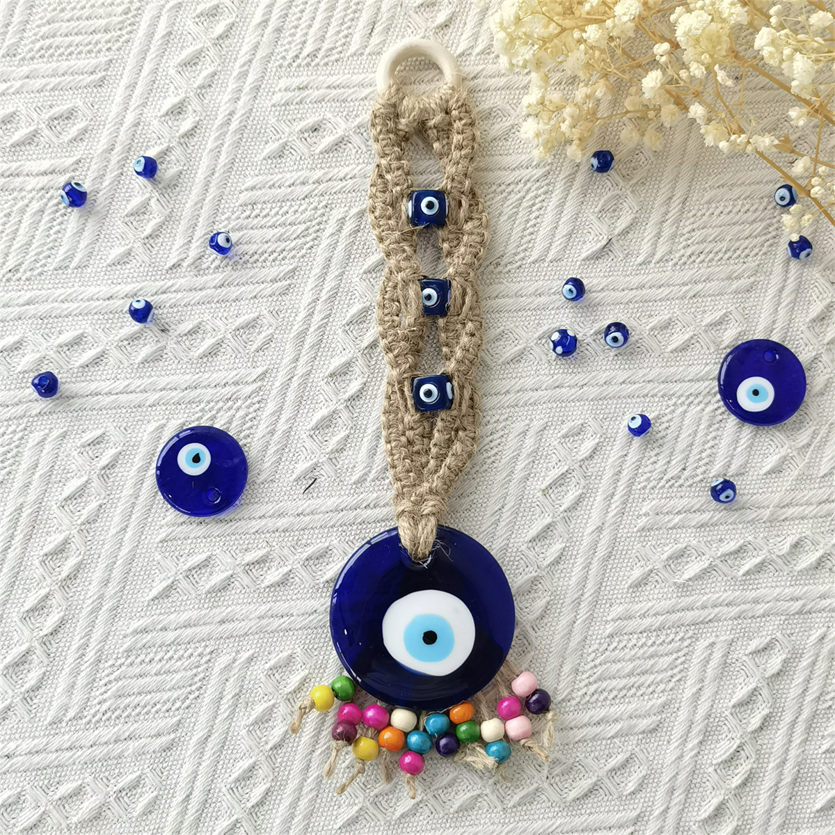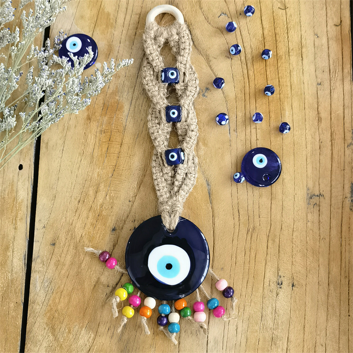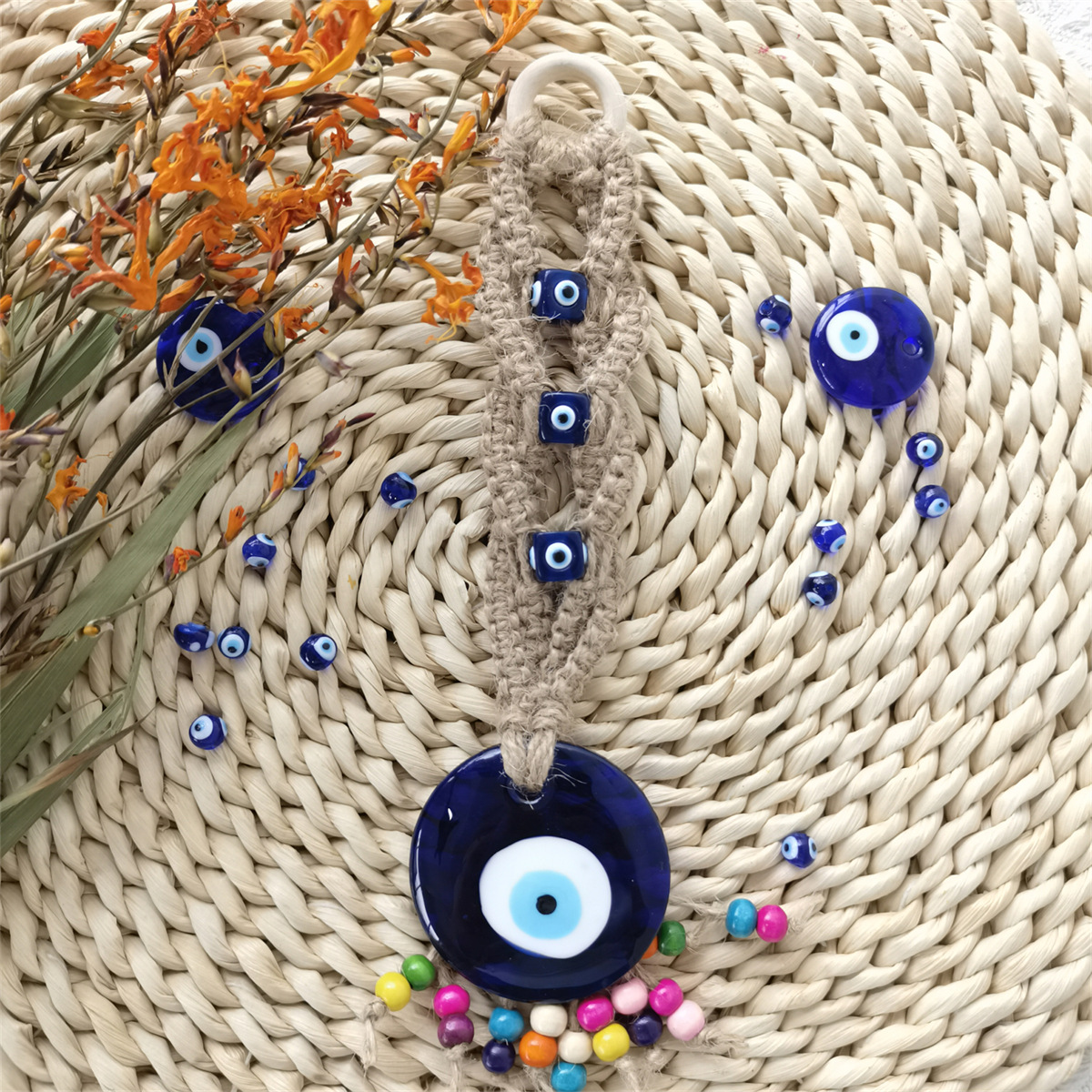 Product Name: "Hemp Thread Color Beads Blue Eye Pendant"