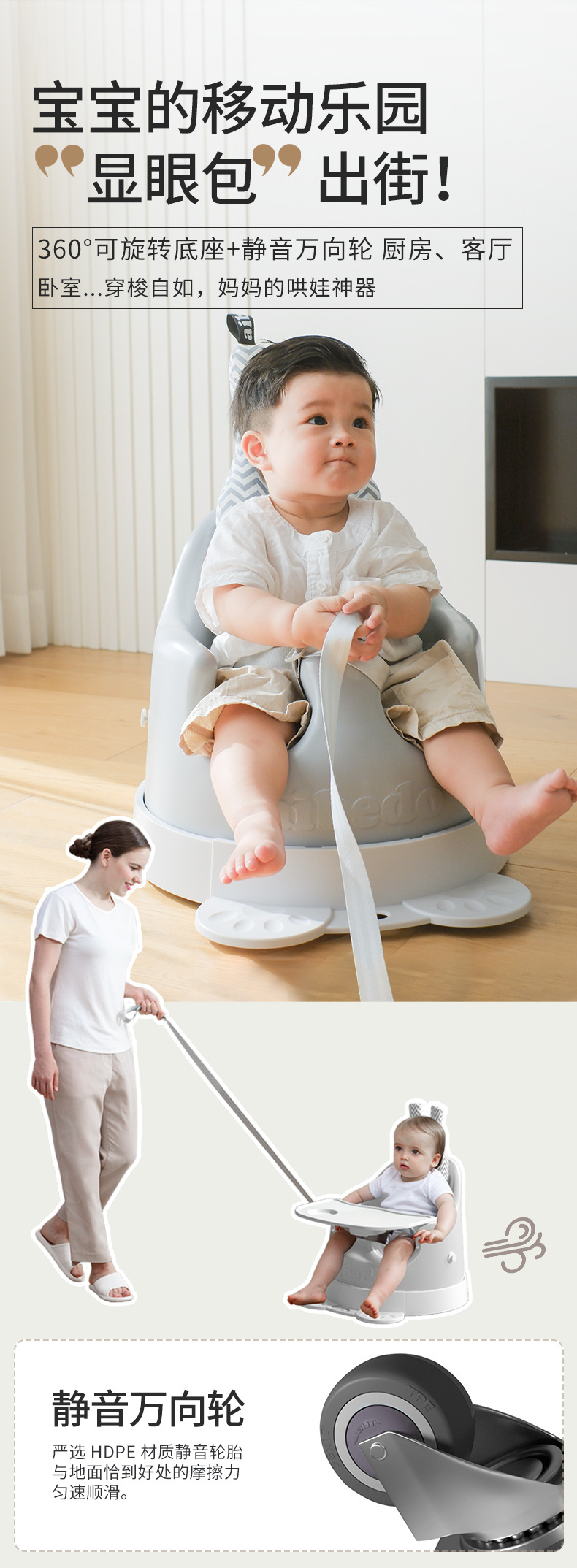 intelligent style [light beige meal body + traction belt + pedal] with wheels