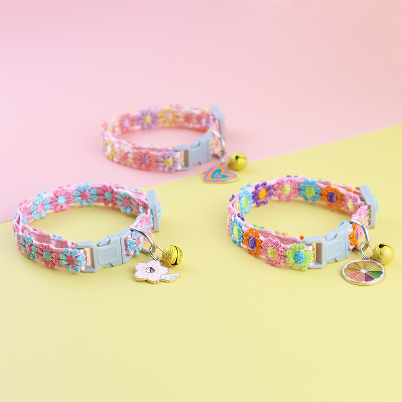 cross-border pet supplies wholesale factory direct sales ins style colorful lace flower collar bell kitty small dog harness