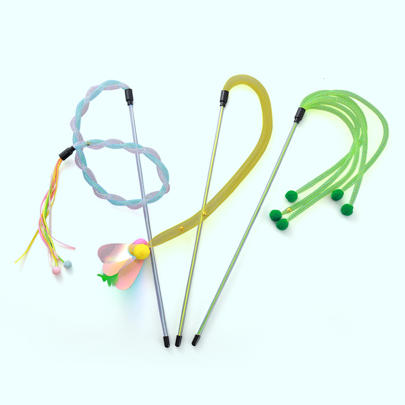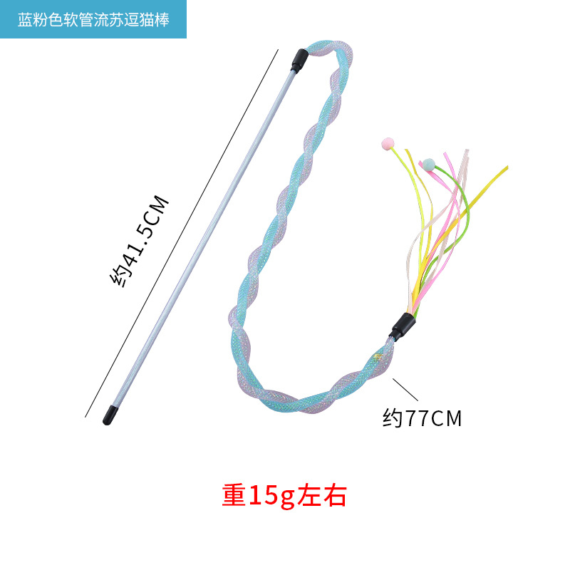 blue pink hose tassel cat teaser