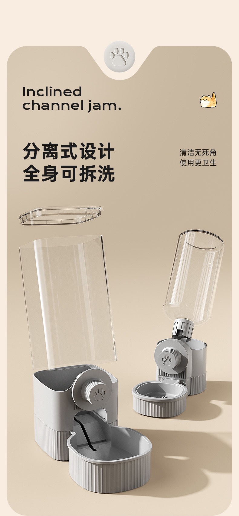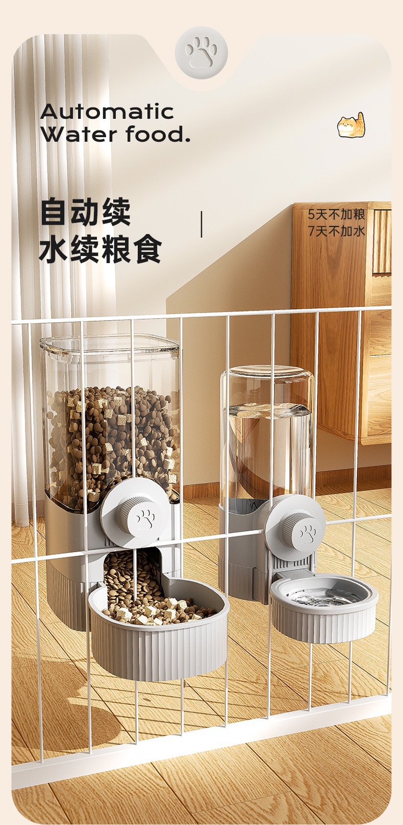 hanging pet bowl feeding + drinking gray