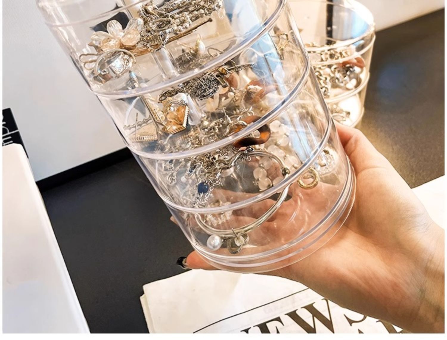 transparent five-layer rotating storage box with cover