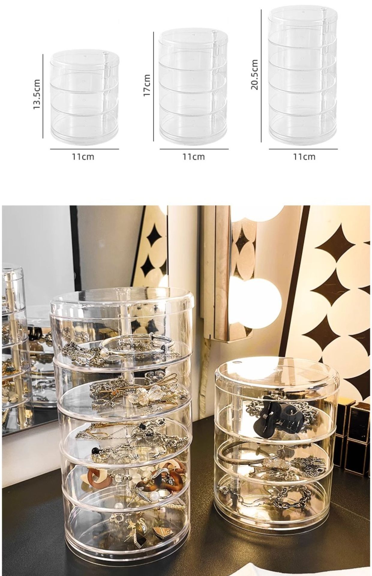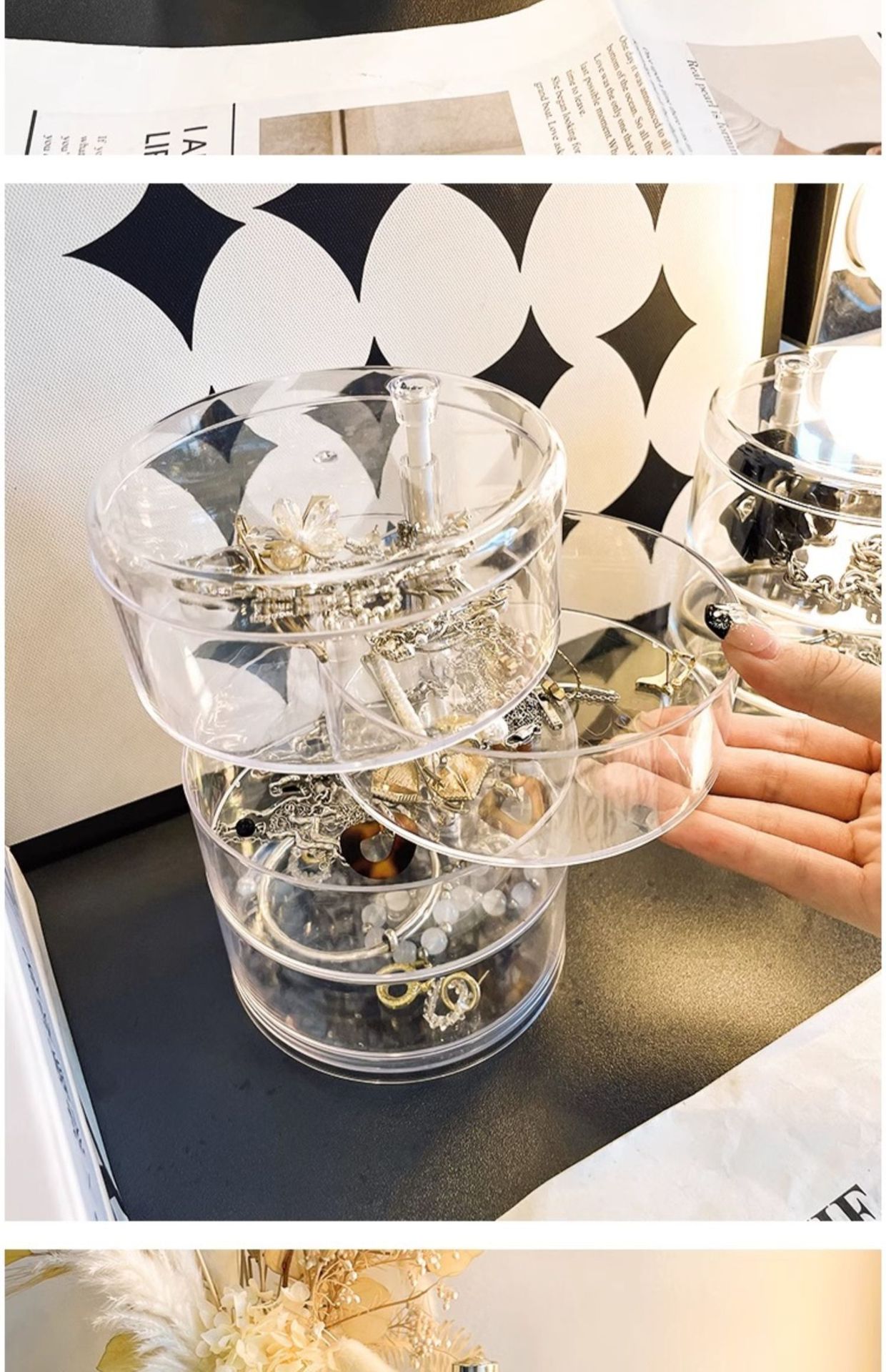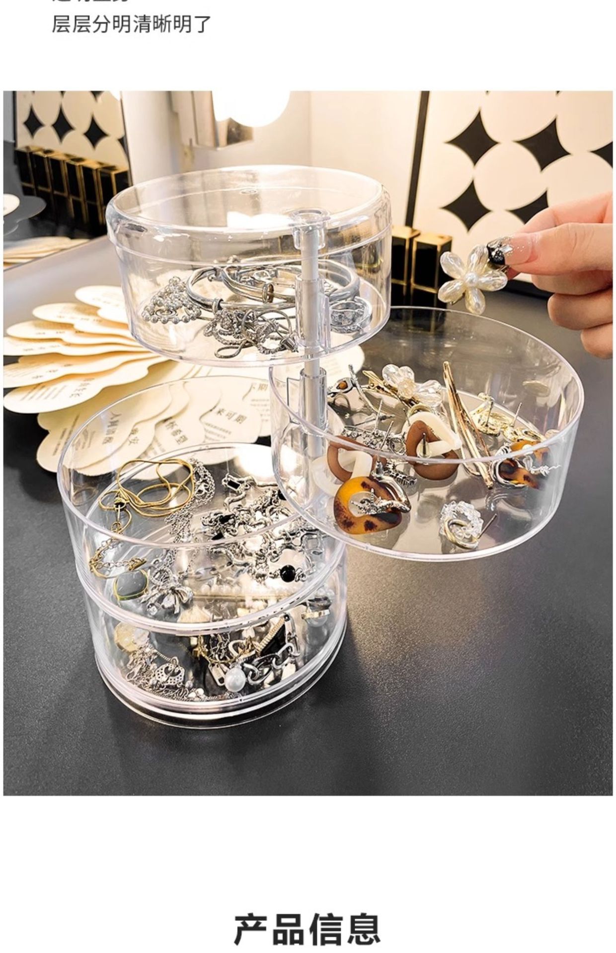 transparent three-layer rotating storage box with cover