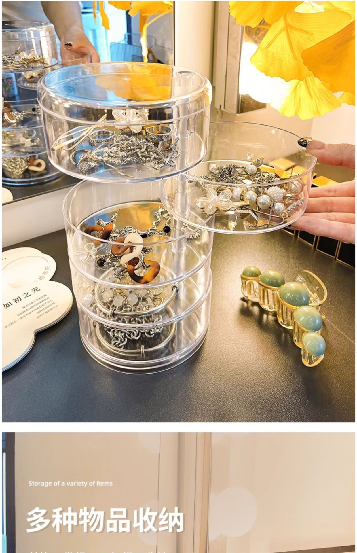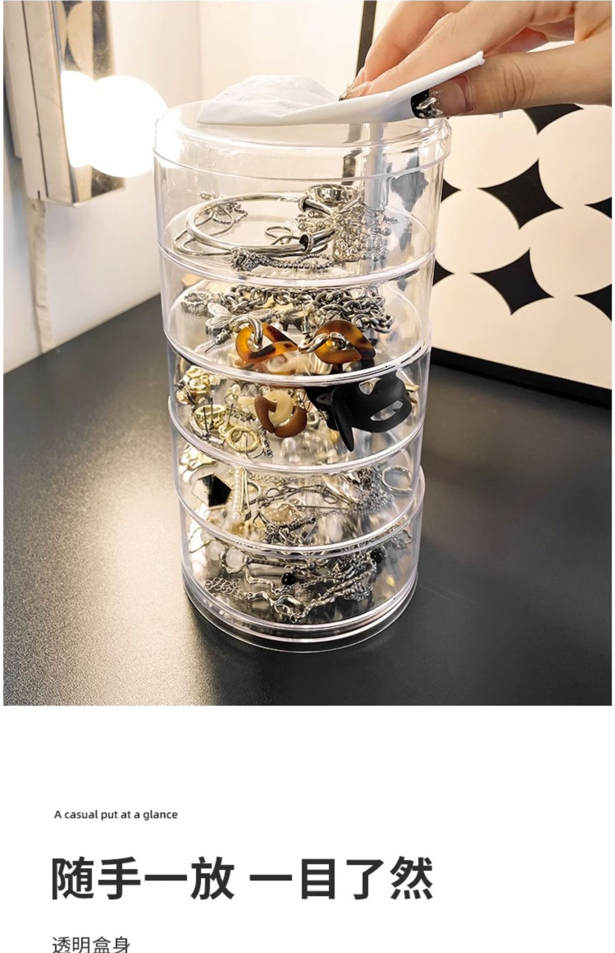 transparent five-layer rotating storage box with cover