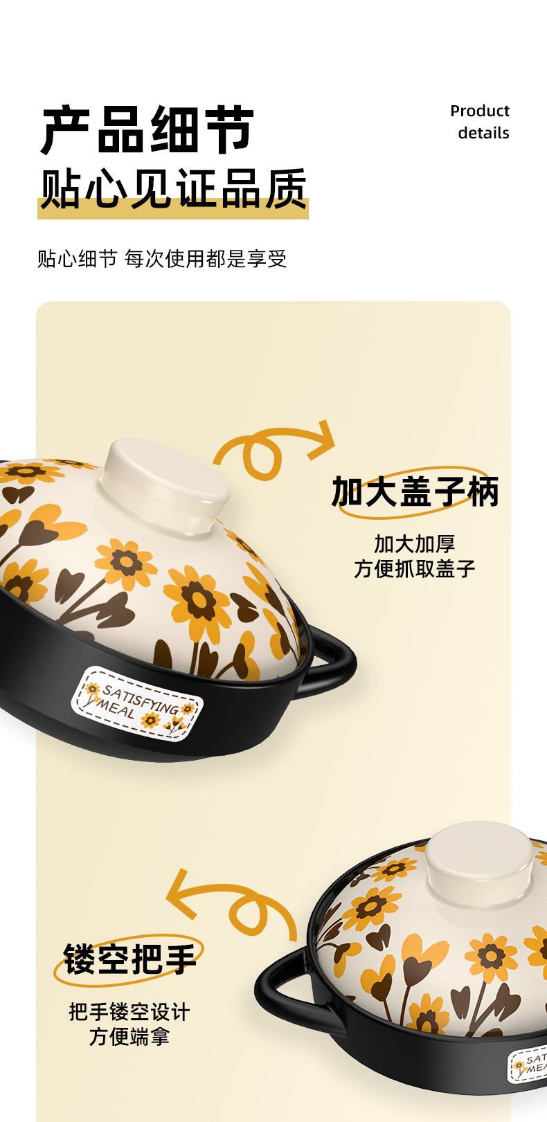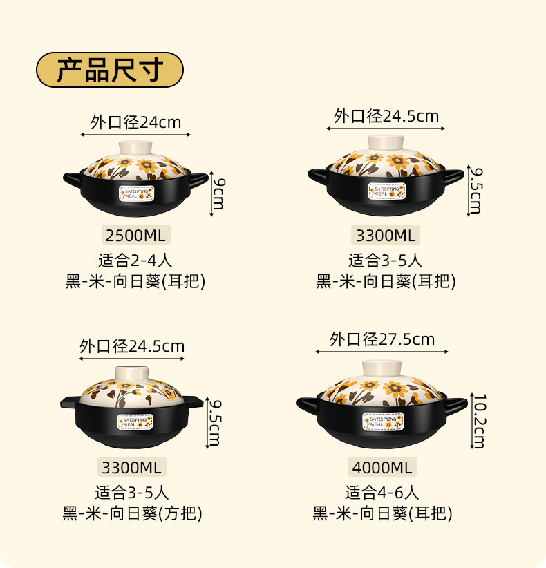 round handle sunflower cover 3300ml 3-5 people