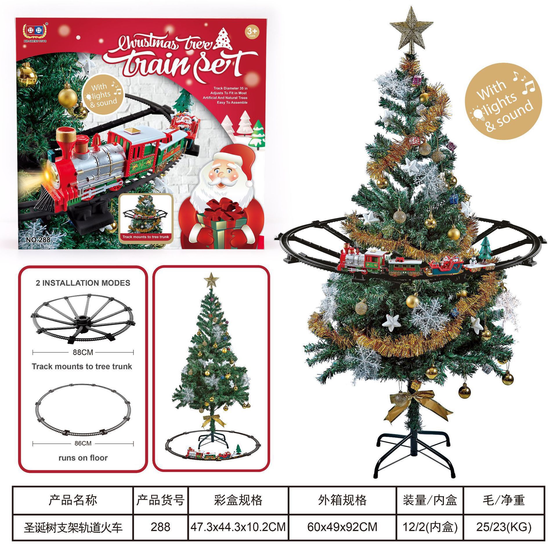 288 large gift box package hanging tree music light train