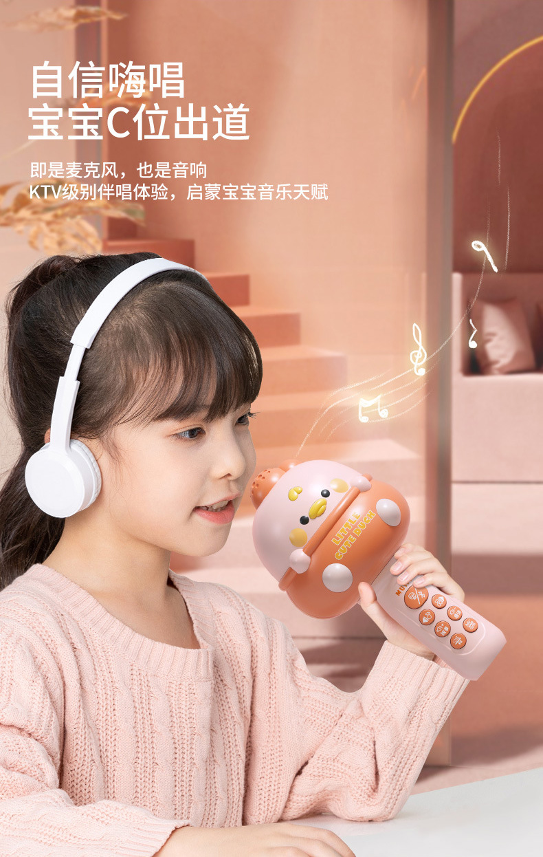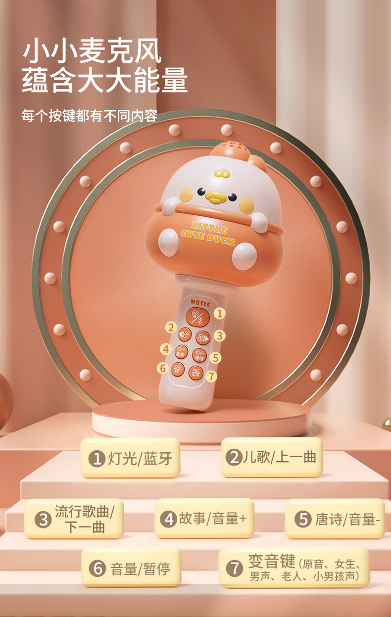 [cute duck-pink] early education music microphone with bluetooth + usb charging