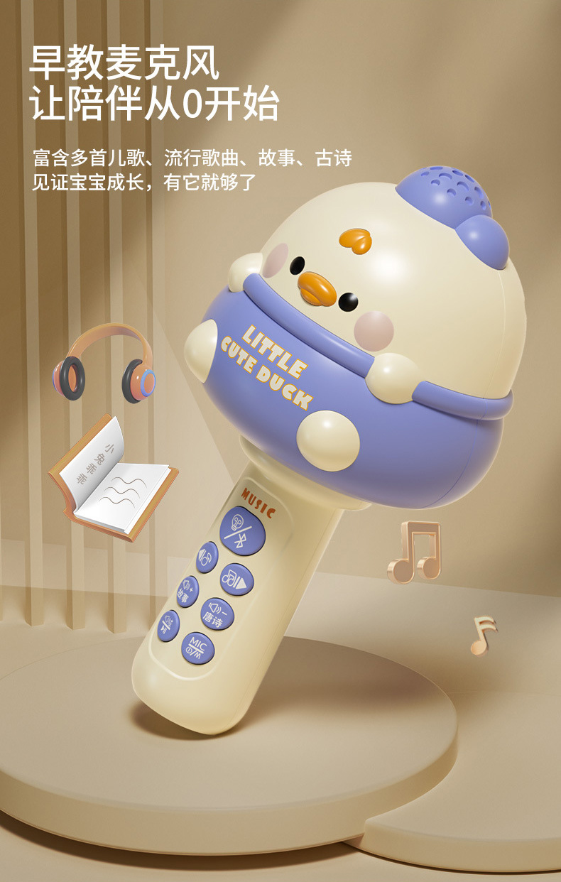 [cute duck-blue] early education music microphone with bluetooth + usb charging