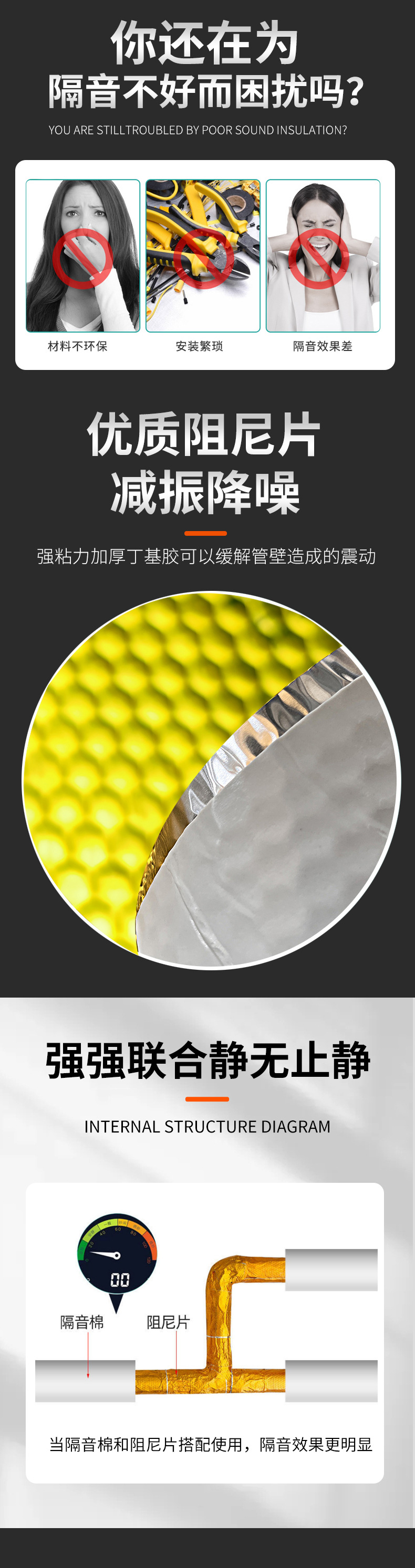 pipe diameter 50 type combination: 2cm thick sound insulation cotton + damping piece + accessories (1 m material)