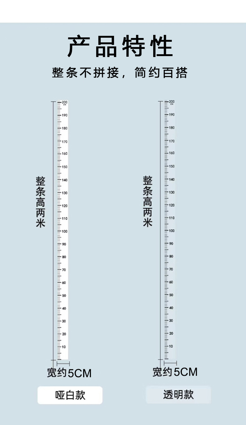 transparent 5cmx2 m height measurement wall sticker
