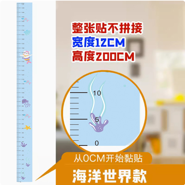 ocean world 12cmx2 m height measurement wall sticker