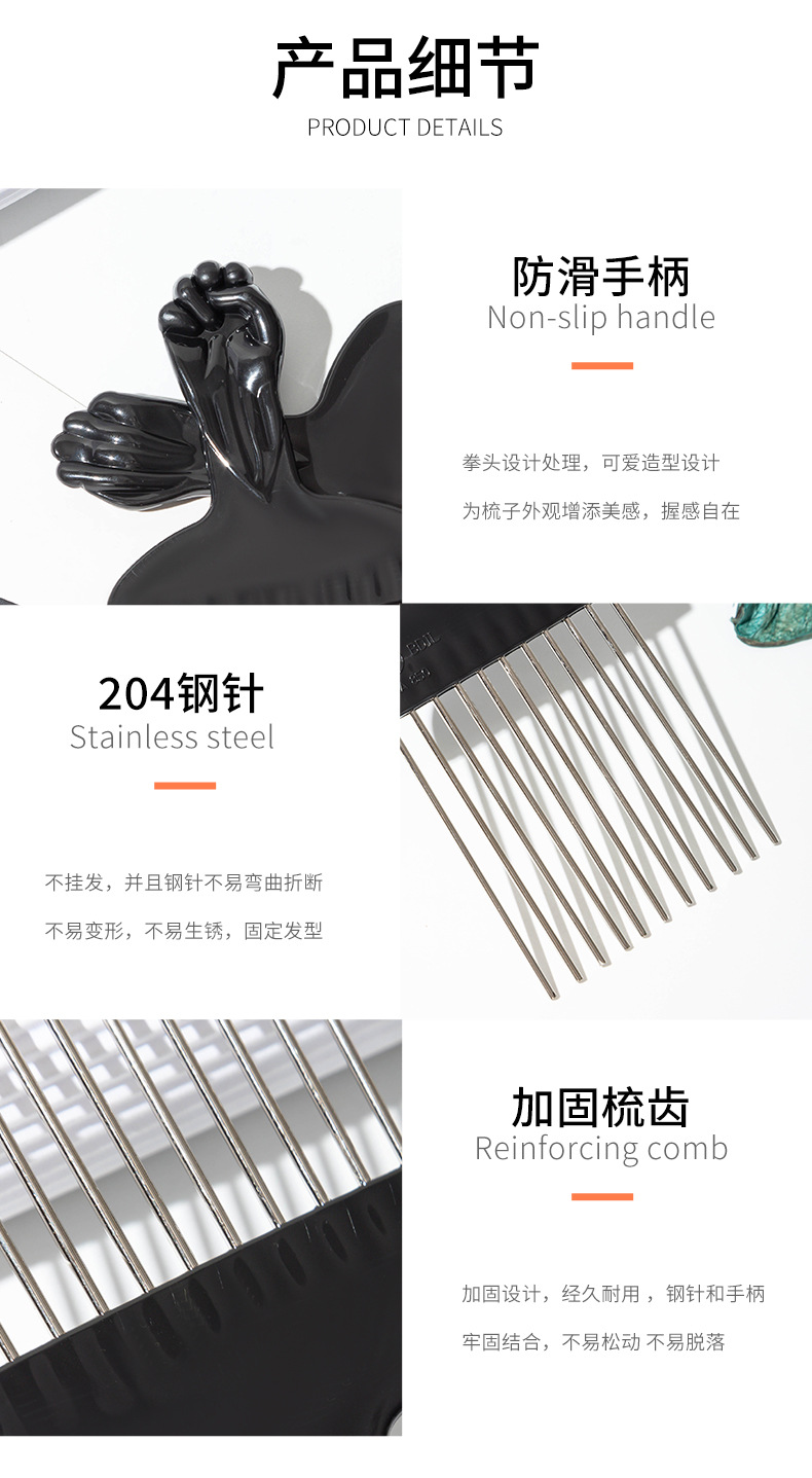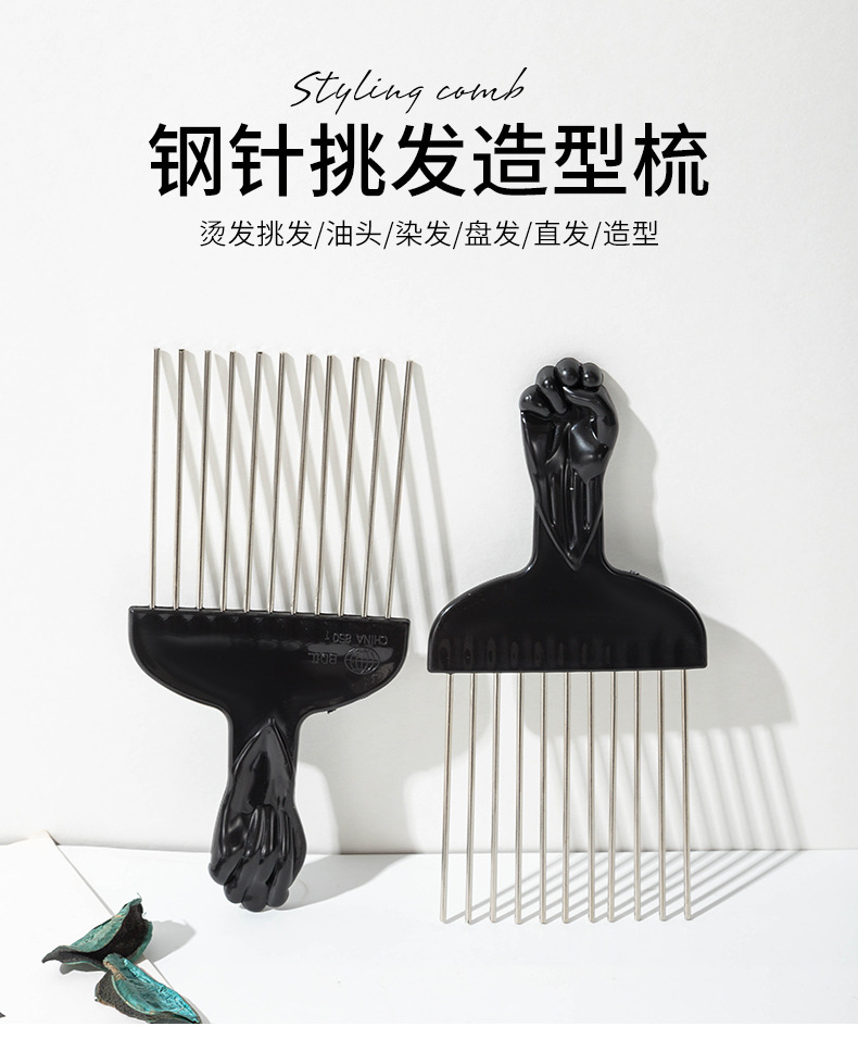 cross-border style household hairdressing comb steel needle hair pick styling comb hair stylist wide tooth hair comb men and women fluffy tangle teezer