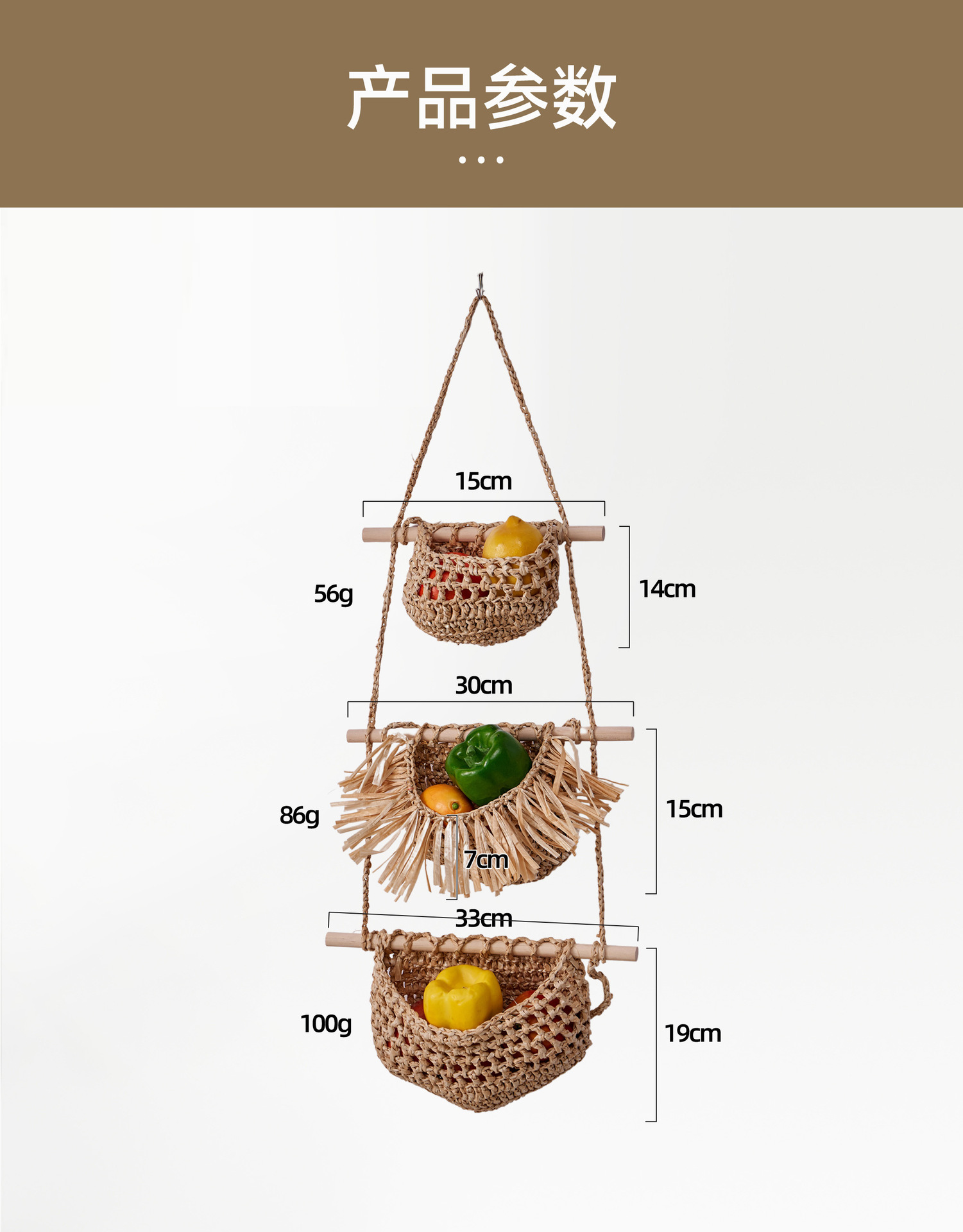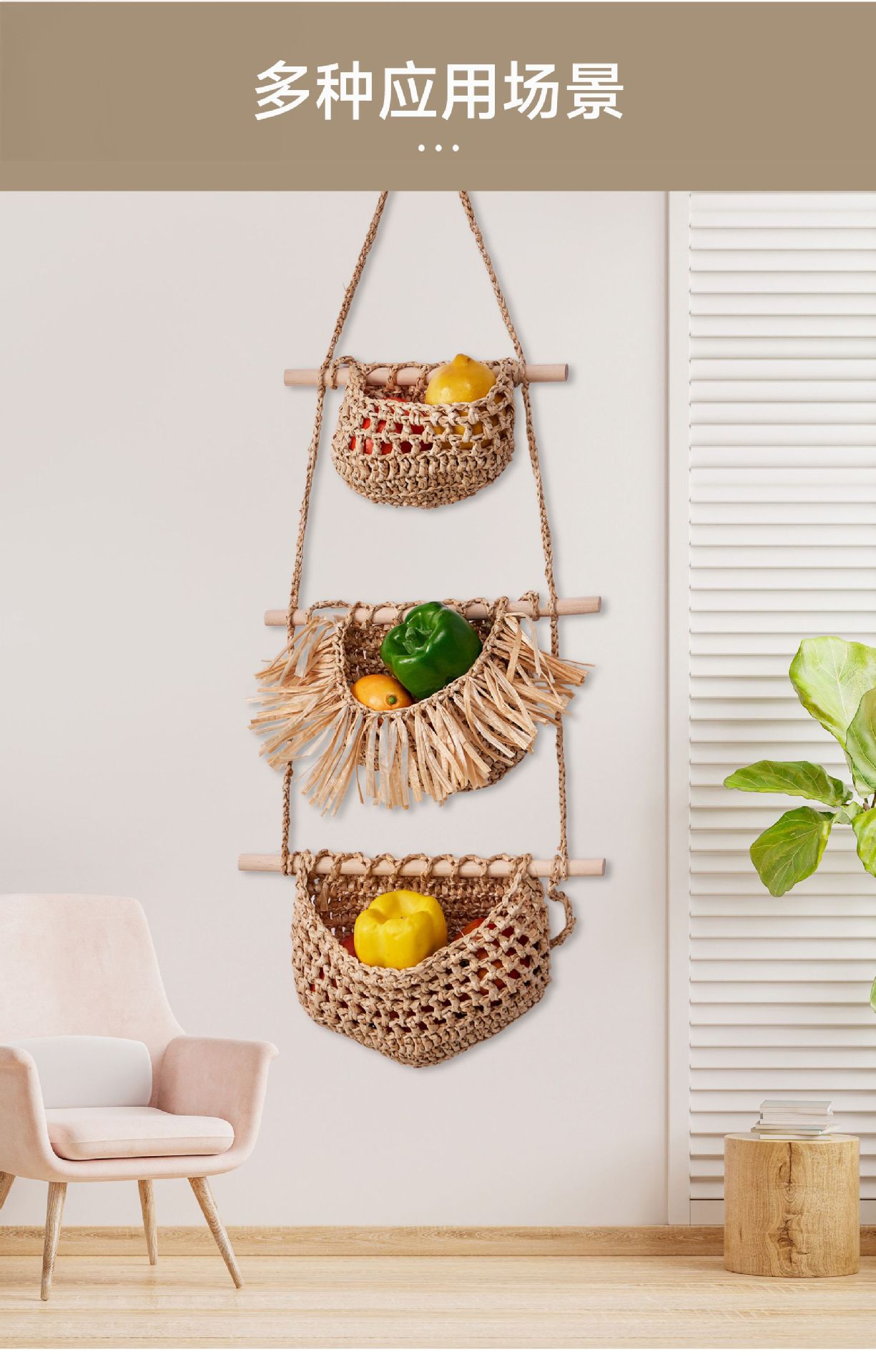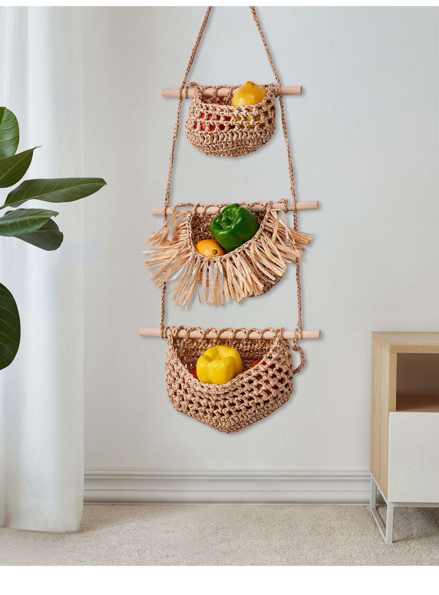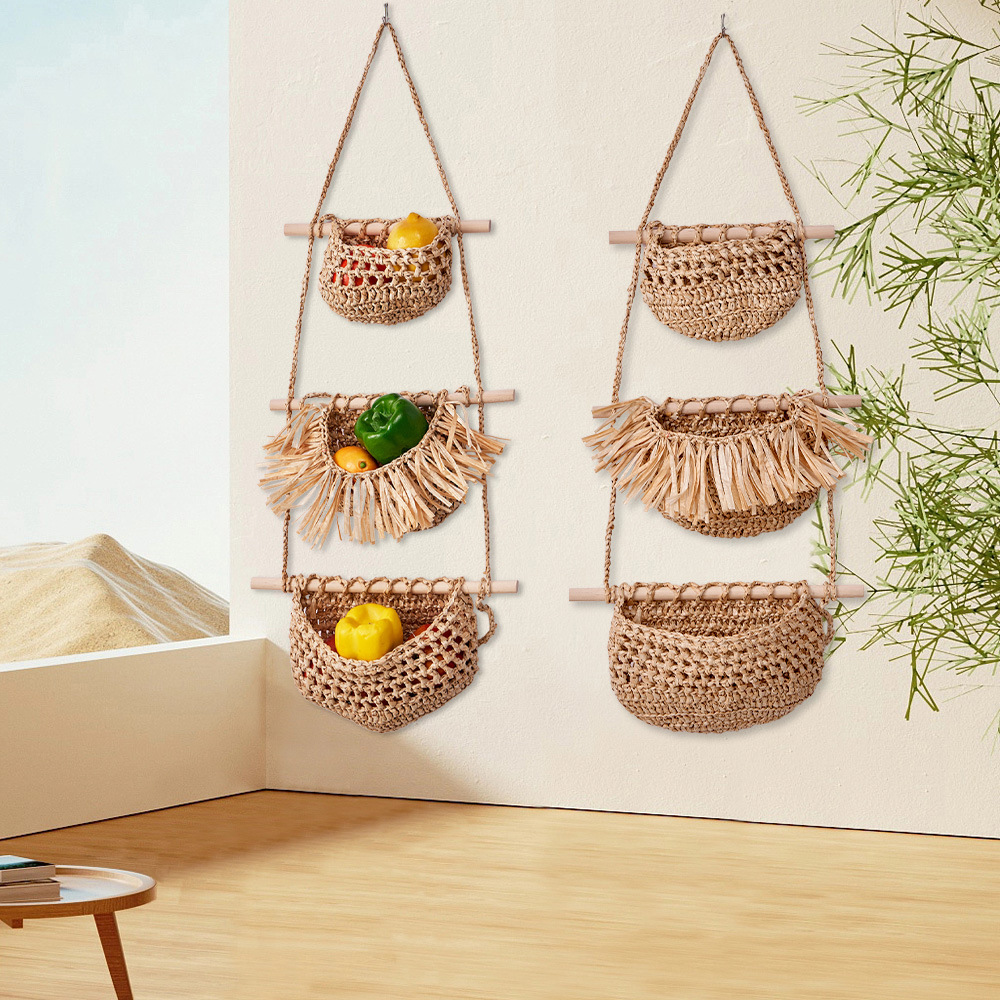 three-layer fruit basket (raffia)