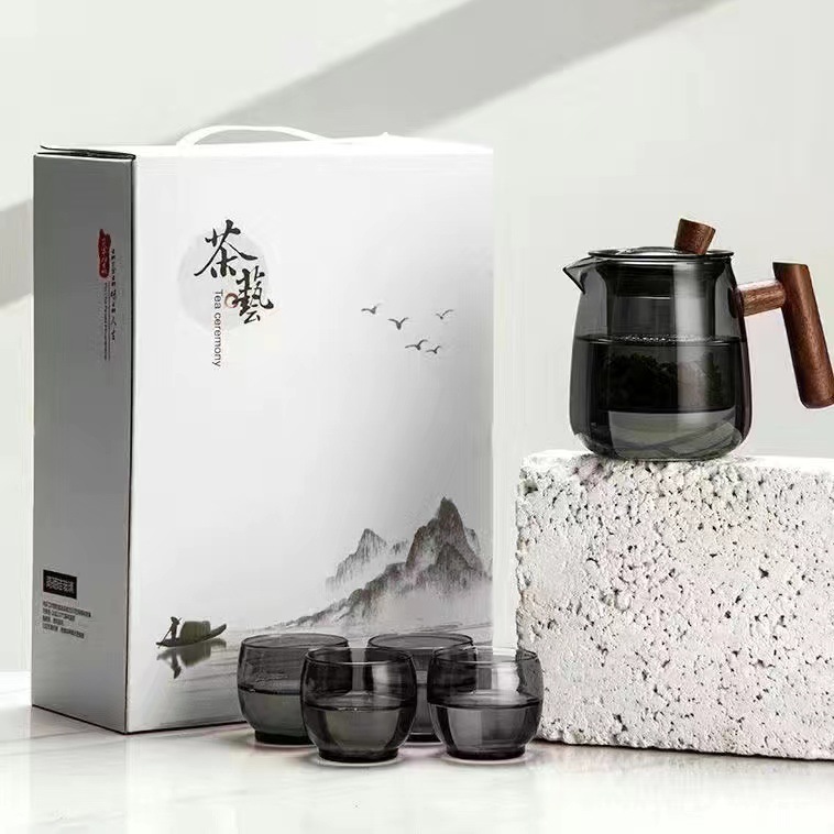 gift box transparent black +4 cups (transparent black)