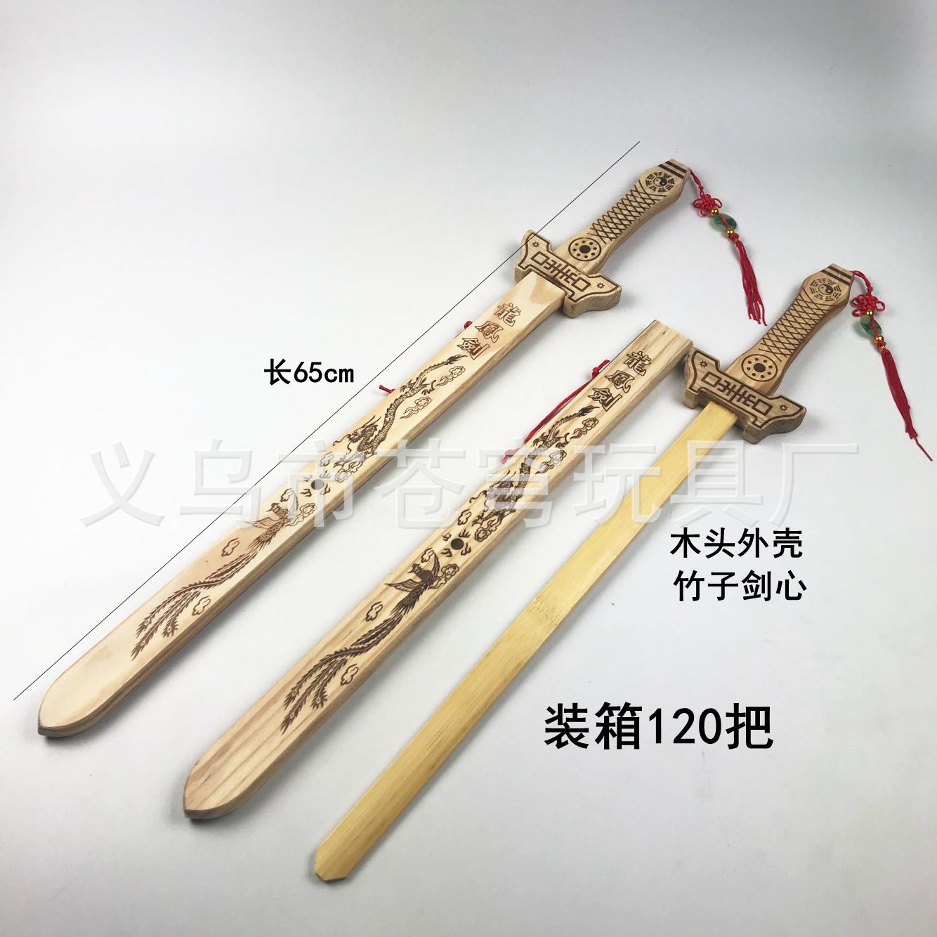 wood carving dragon and phoenix sword