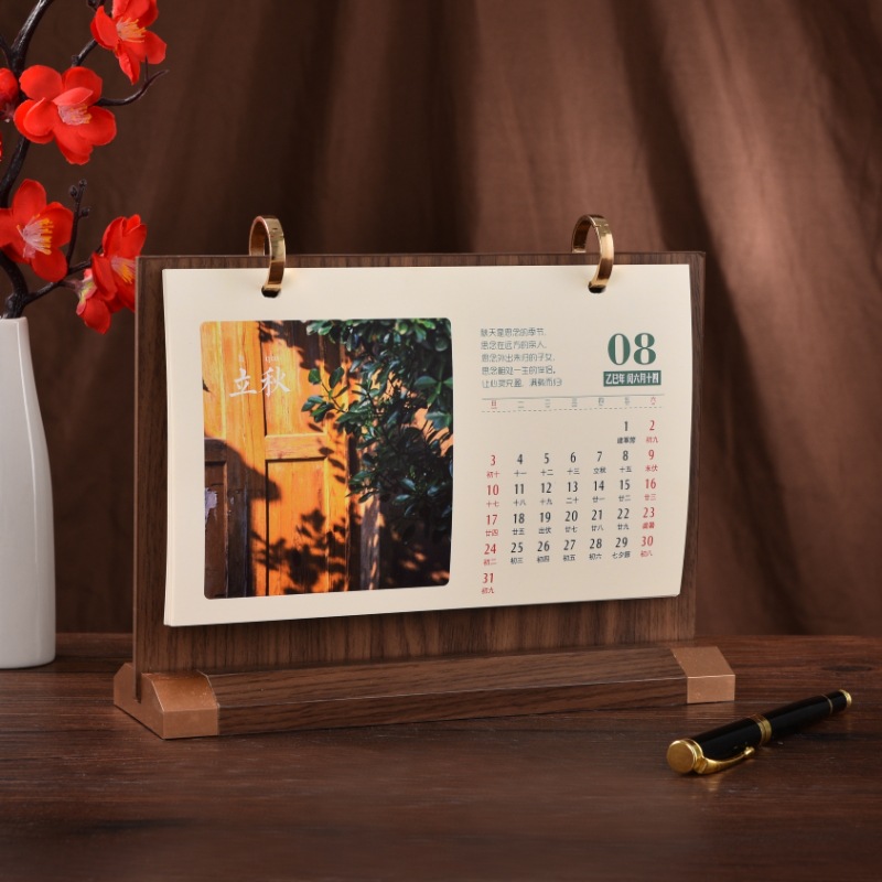 vertical plastic ring black peach wood color desk calendar type a