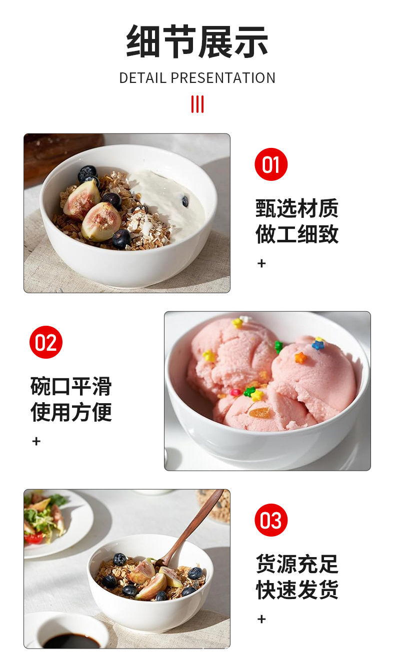 Product name: Ceramic bowl Arhat bowl Plain white salad bowl Instant noodle bowl Ramen bowl