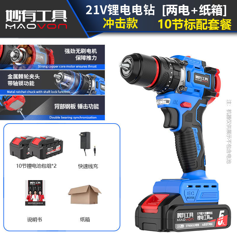 brushless electric drill 21v(10 sections cell) dual power + accessories