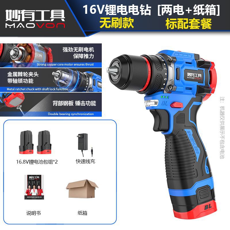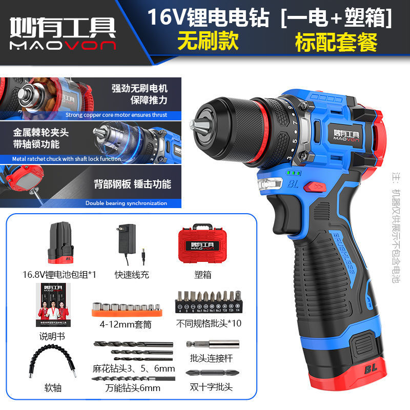 brushless electric drill 16.8v(4 sections cell) dual power + accessories