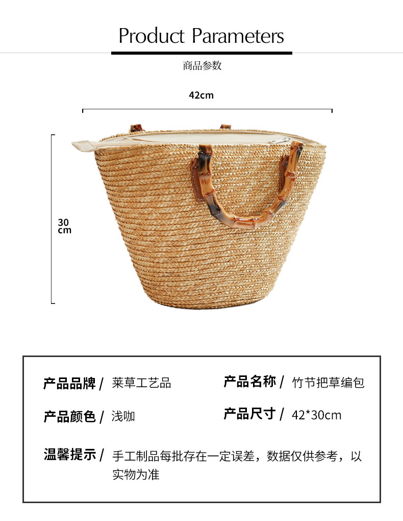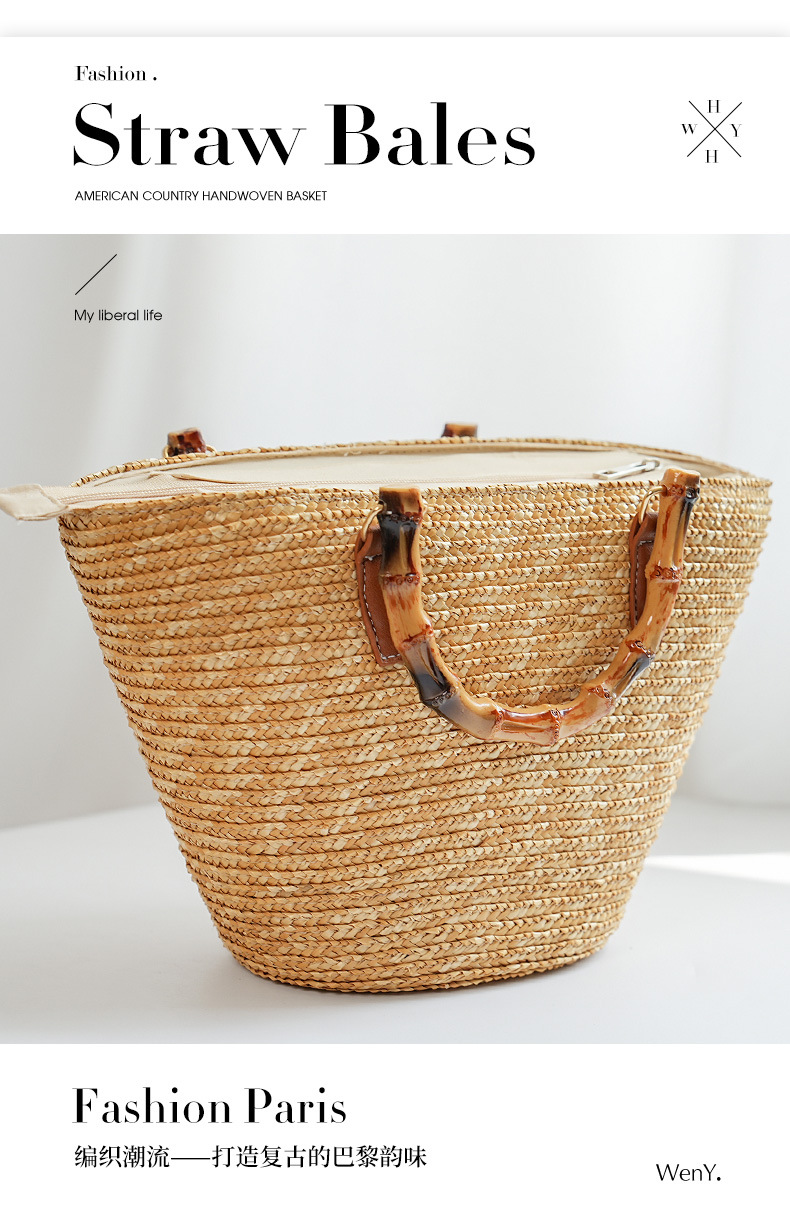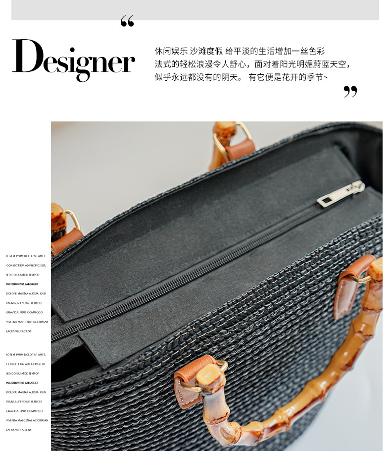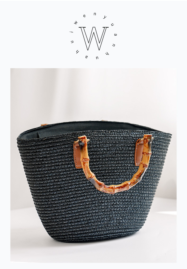 [customized] hand-woven bag ins advanced sense bamboo festival ladies portable straw-weaved bag seaside vacation beach bag