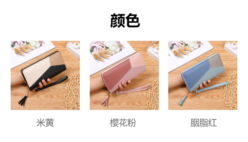 lady hand-carrying wallet women's long three-color stitching contrast color simple graceful zipper mobile phone bag student billfold wallet leather wallet